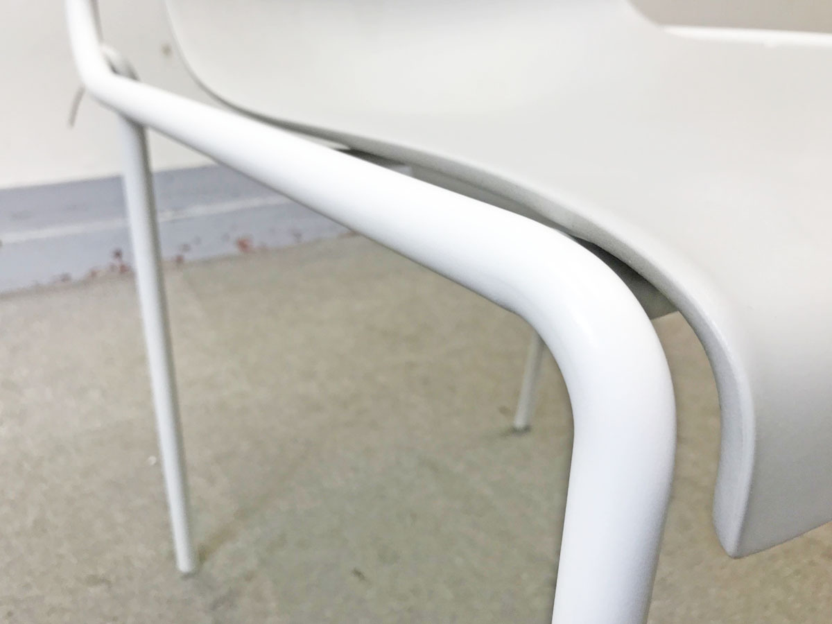 このフレームによって椅子が引きやすく、スムーズな持ち運びやスタッキングが可能になっています