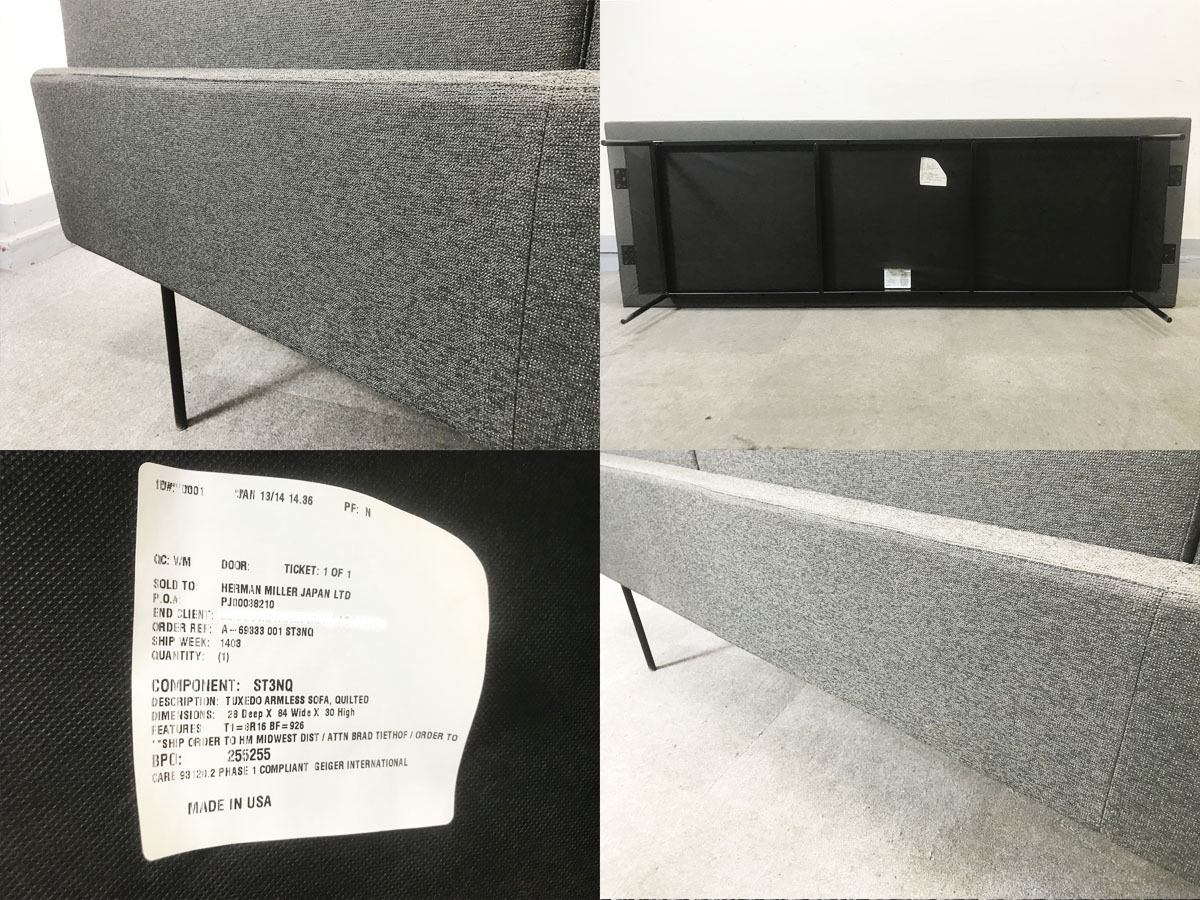 【展示品】ハーマンミラー タキシード アームレスソファ 新品定価130万- デザイナーズ家具センター