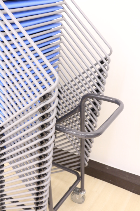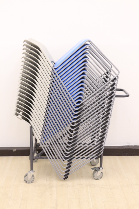 国内メーカー製/スタッキングチェアセット+台車(ライトブルー)