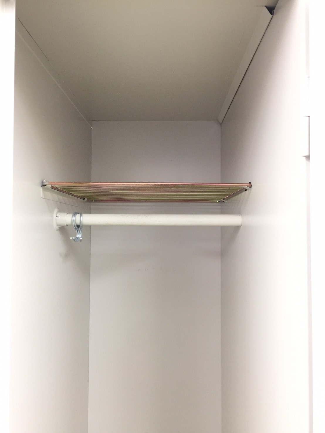 縦長ですので、コートなどもかけておけます!網棚もあるので靴や鞄も収納OK!