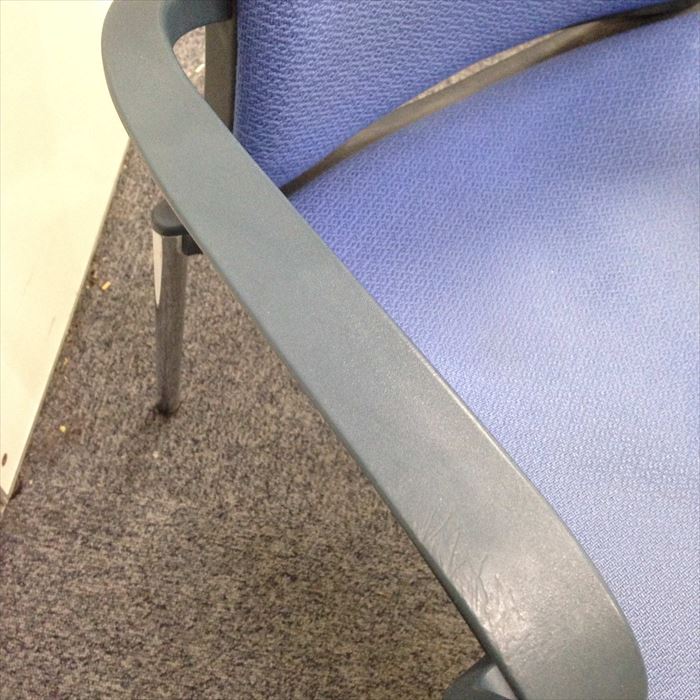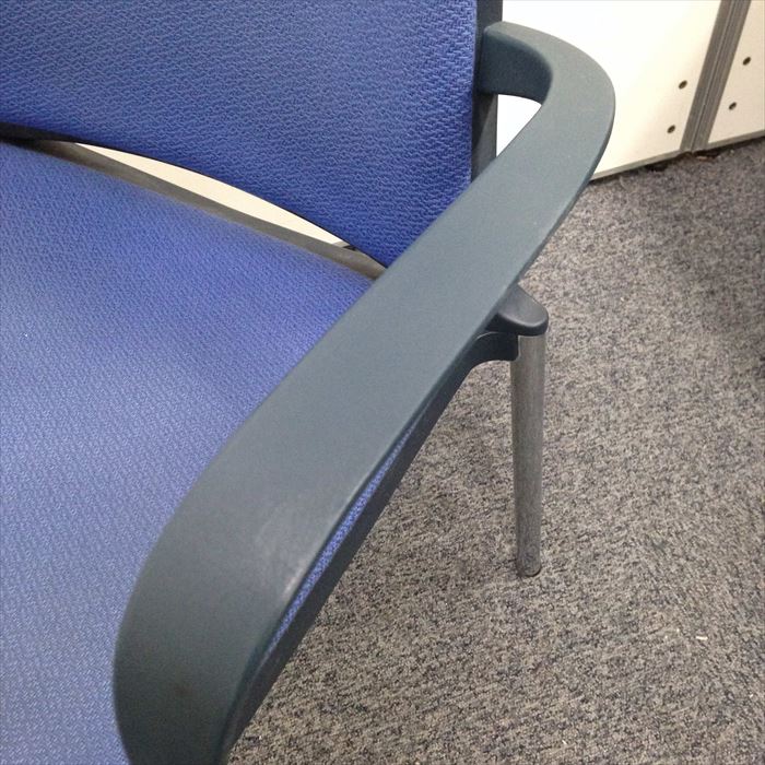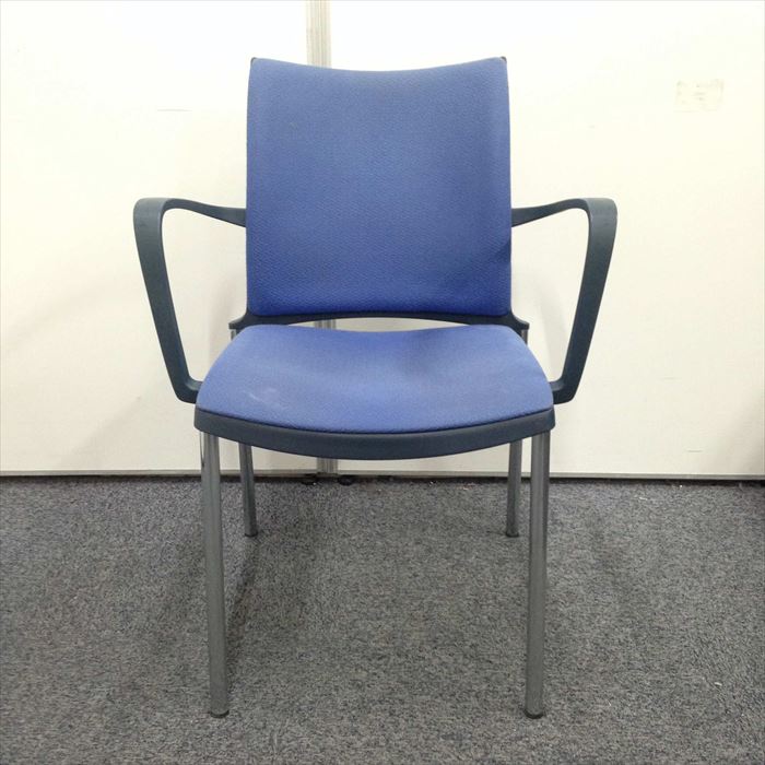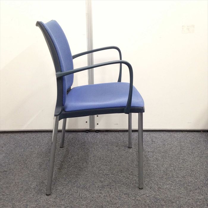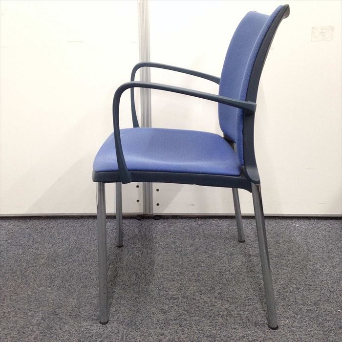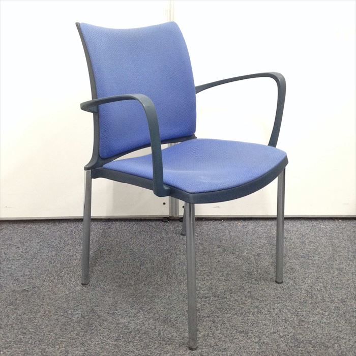 【4脚入荷】■肘付きなのでミーティングや休憩室、塾や研究所等に!■ブルー■キャスター無しタイプ■スタッキングチェア- 名古屋本店