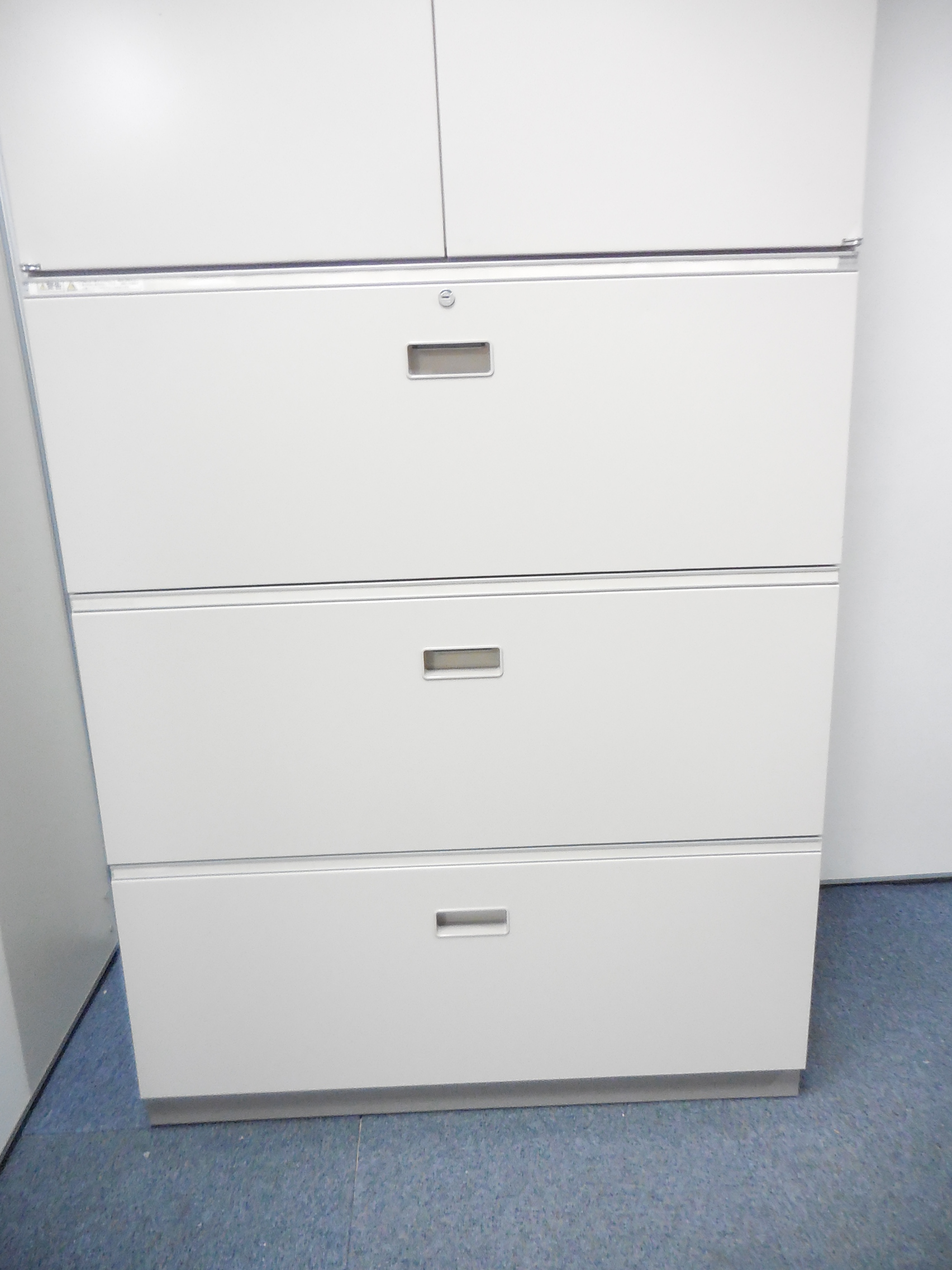 【オフィスの定番】【収納&セキュリティ】イトーキ製のシンラインシリーズ、上下書庫セットが入荷致しました。 ◆ニューグレー(WE色) ◆上置:両開き(観音開き)書庫 ◆下置:3段ラテラル- 横浜本店