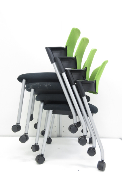 【お得なセット商品】グリーン×ブラックのツートンカラー!!重ねて収納可能なスタッキングチェア!!【会議室にオススメ!!】- 在庫数