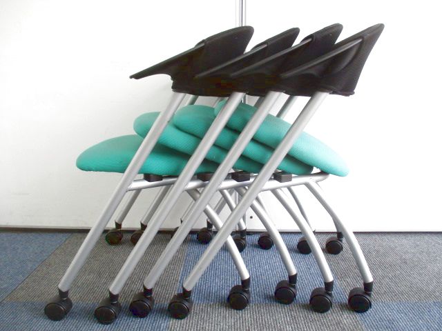 【お得な4脚1セット】すぐに会議用のチェアが揃います!【座面を跳ね上げ収納可能】- 千葉店