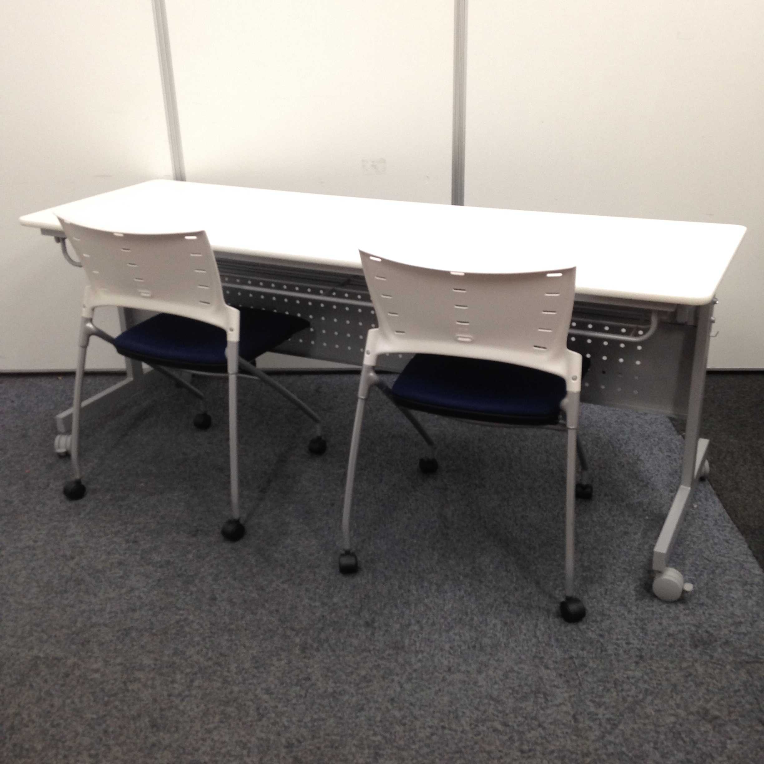 【セット】会議テーブルセット 折畳可能なサイドスタックテーブルとキャスター付きチェア- 名古屋本店