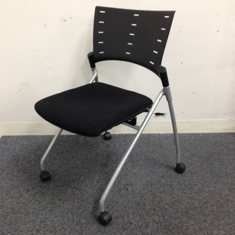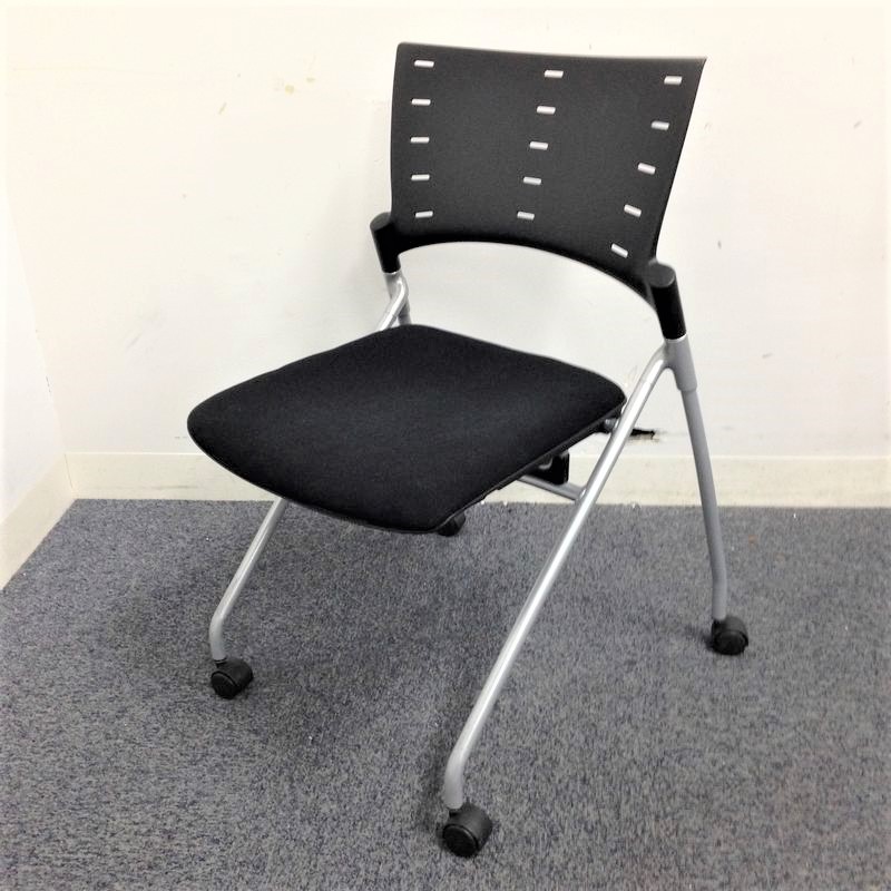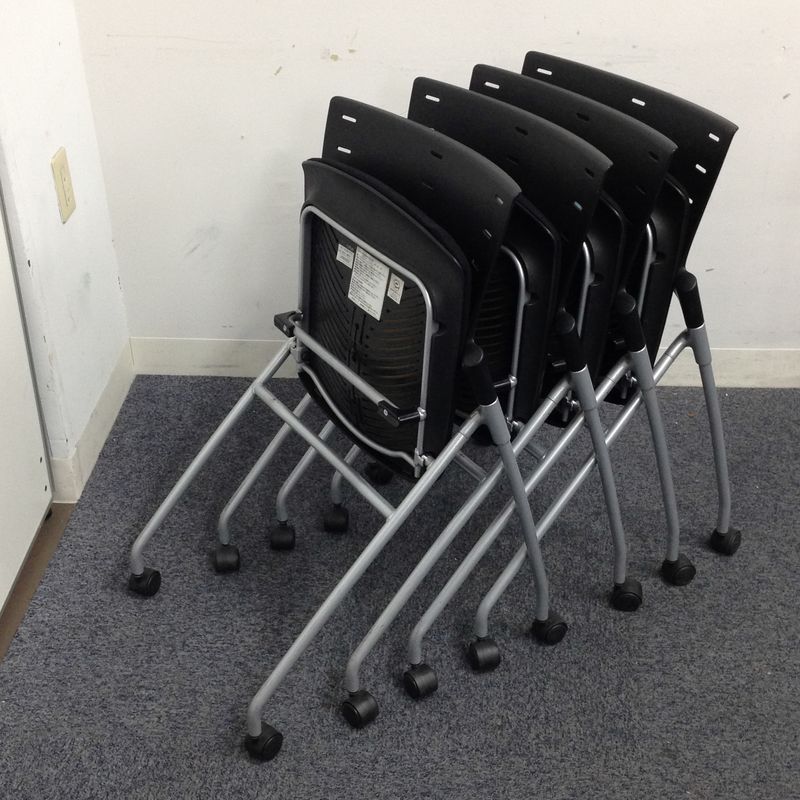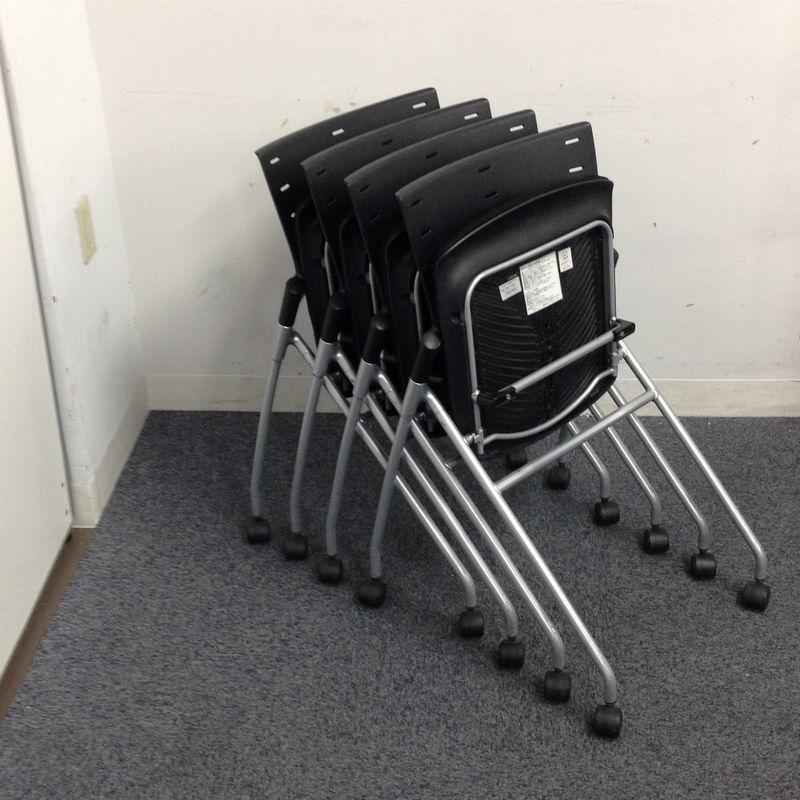 【まとめて買うなら4脚セットがお得!】■ミーティングや商談、休憩室用にも■イトーキ製■ネスティングチェア■ブラックカラー- 名古屋千種店