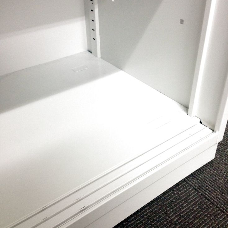 【スライド引き戸だから開閉スペースに困らない!】■コクヨ(KOKUYO)製 エディア(EDIA)シリーズ 2枚引き違い書庫 ローキャビネット シリンダー錠 天板付き ベース付き ホワイト シリンダー錠 収納 中古家具 格安 福岡 オフィス家具 九州最大級《オフィスバスターズ福岡博多店は、福岡を拠点として、日本全国へ中古オフィス用品・オフィス家具を提供しております》