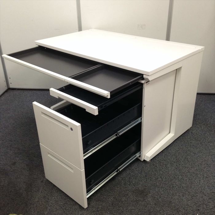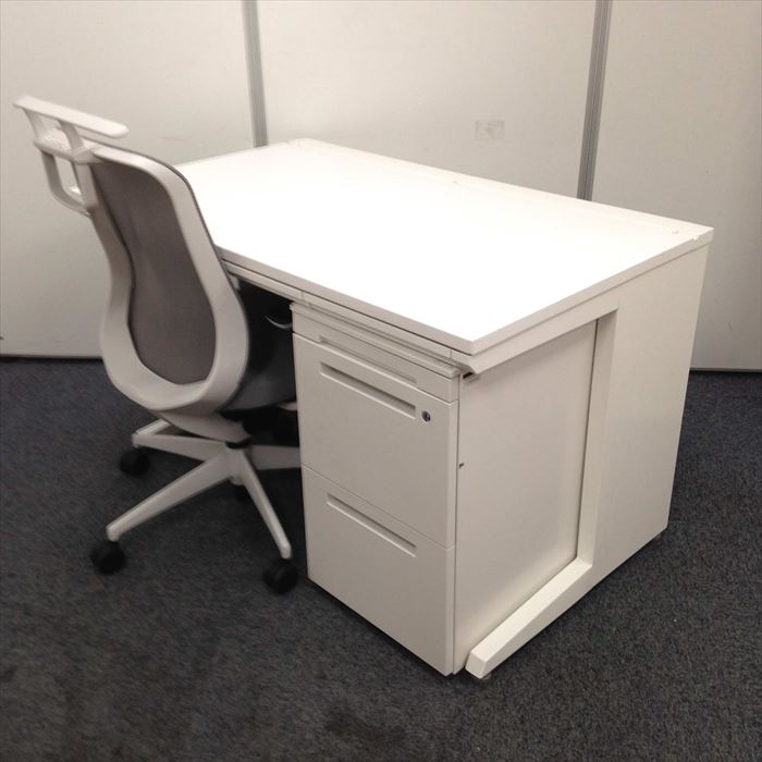 【片袖机として使えます!】■オカムラ+イトーキ製■平机+3段ワゴン■大人気のホワイトカラー!- 名古屋本店