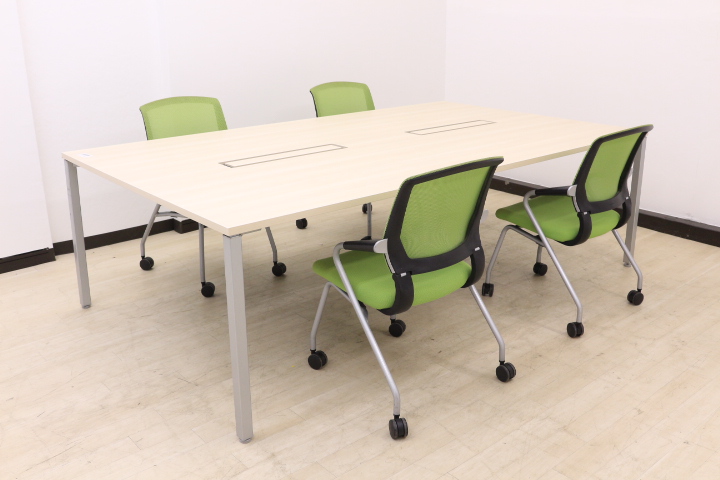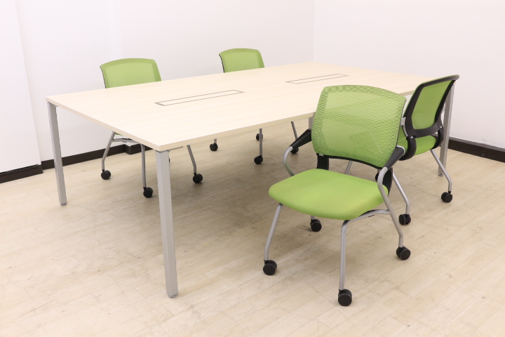 【お得な会議室セット!!テーブル+チェア!!】人気の木目&グリーンで色相性抜群!!チェアはメッシュ生地!!- 春日部・越谷店