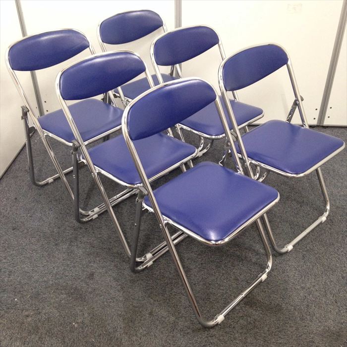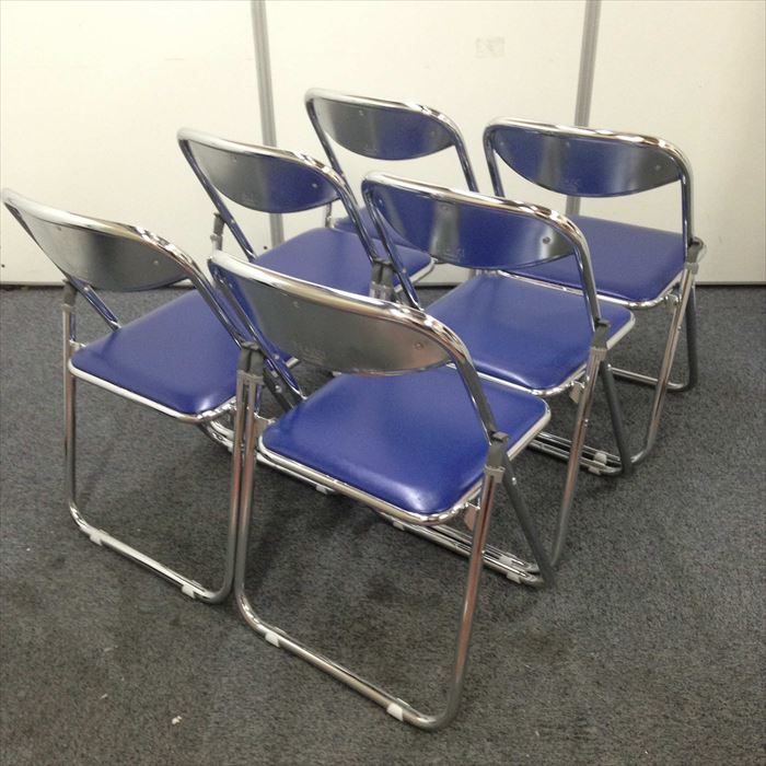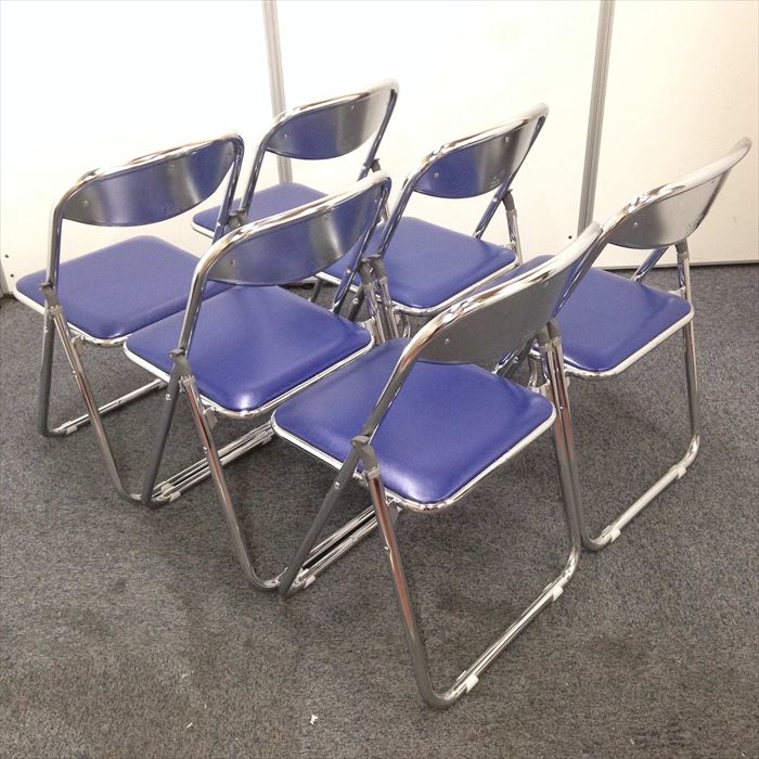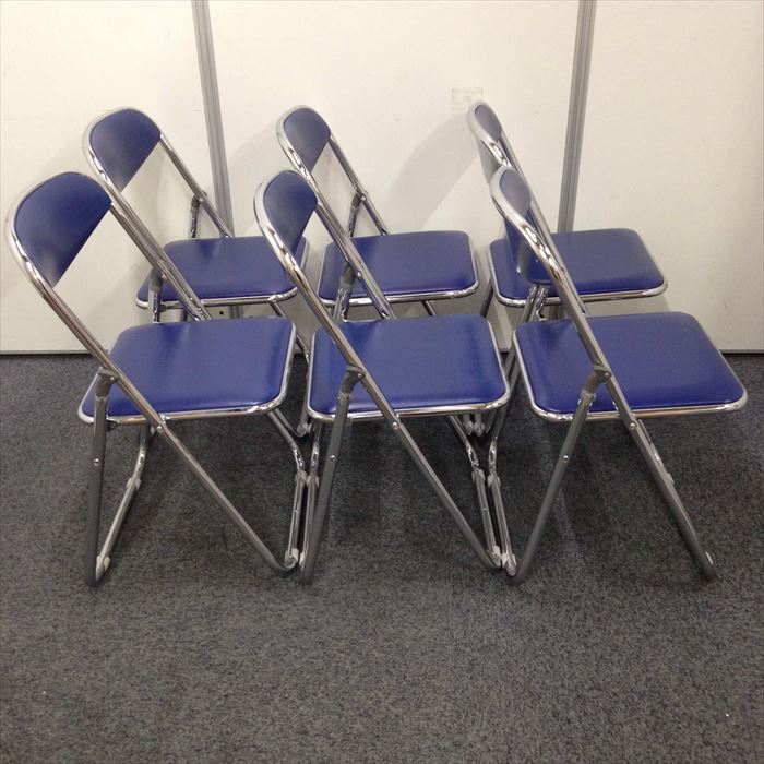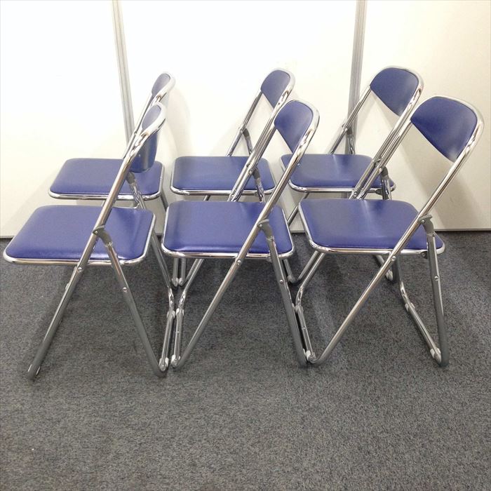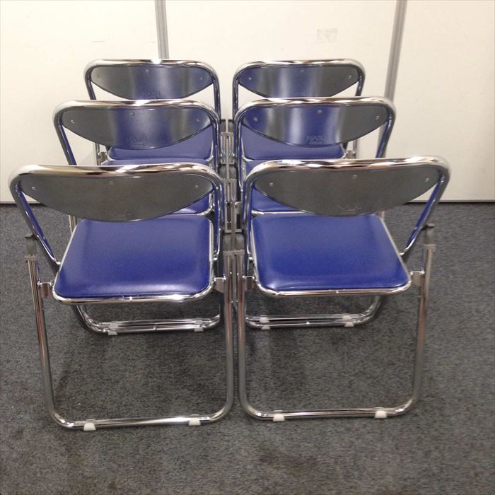 【お徳な6脚セット!】折りたたみ椅子 ナイキ製 ブルー色 急な来客用にいかがですか?- 名古屋本店