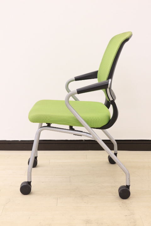 【10%OFF!会議用チェア4脚セット!!】キャスター付き、背もたれメッシュ!!明るく爽やかなグリーン!!- 春日部・越谷店