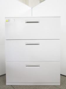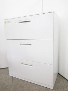 【4台入荷】【収納力抜群の3段ラテラル書庫!A4書類が大量に収納可能!】■コクヨ(KOKUYO)製 エディア(EDIA)シリーズ 3段ラテラル ローキャビネット ■天板/ベース付き ■ホワイト ■シリンダー錠