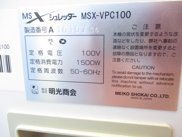 【中古】 MSシリーズ MSX-VPC100 明光商会 シュレッダー 245600