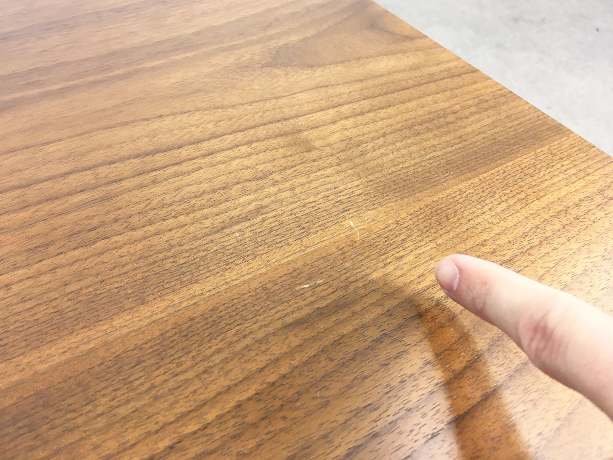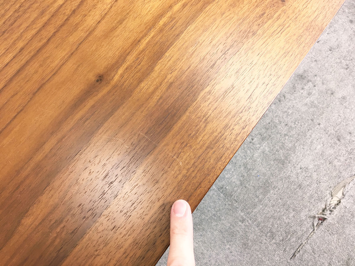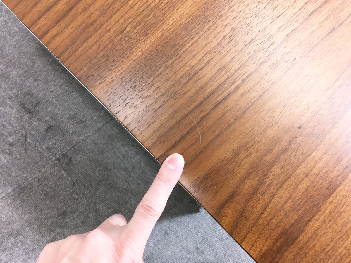 - あり黄ばみ・変色が広い範囲にうっすらある、または濃い黄ばみ・変色が一部ある。(例:三人用ソファ、二人用ソファ、一人用ソファの場合、背もたれ、肘かけ、座面等、 センターテーブルの場合、天板、脚にある。)