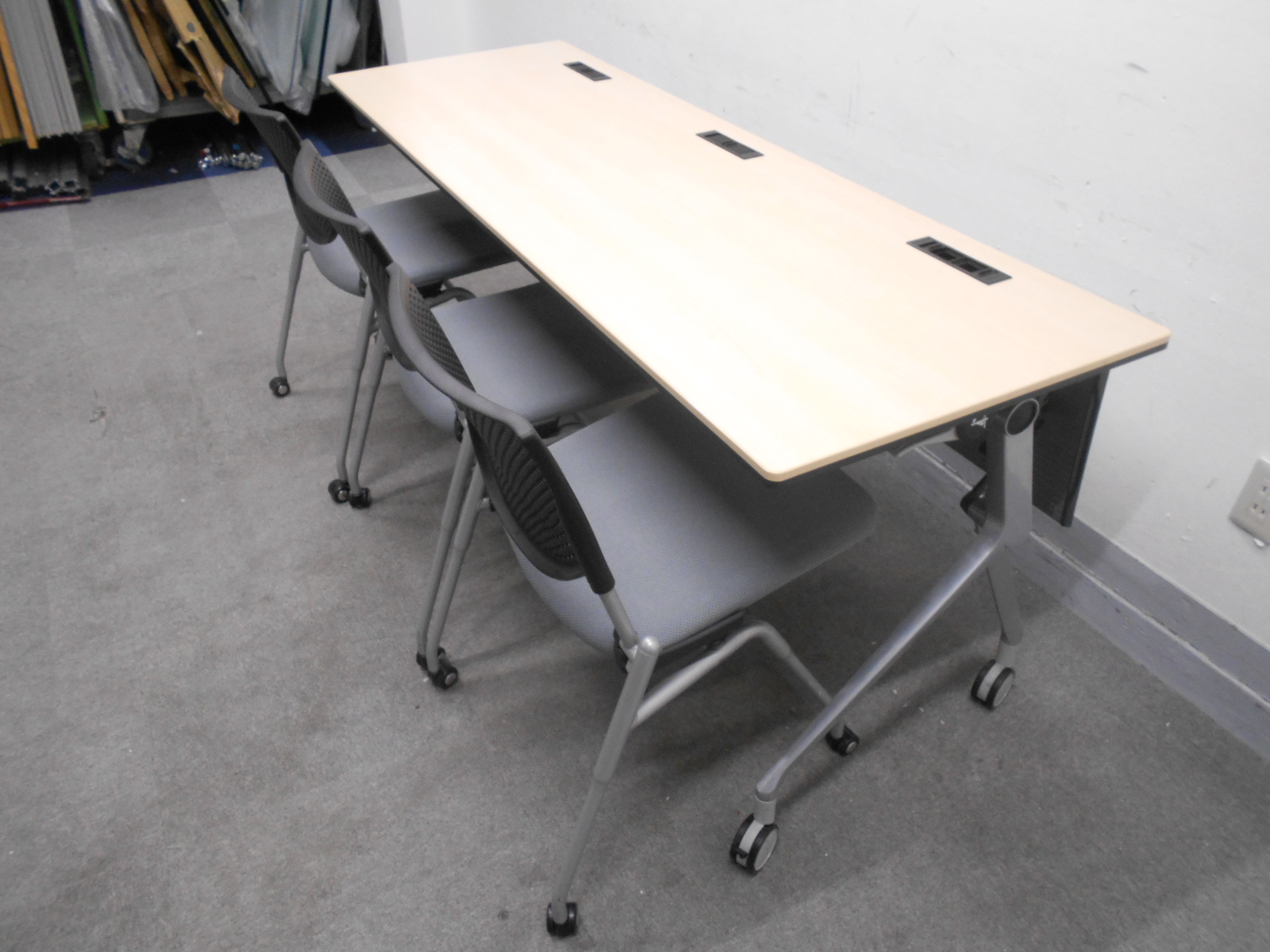 オカムラ製のサイドスタックテーブル(折り畳みテーブル)【フラプター/ナチュラル】が値下げされました。 *良品を格安で!「オフィスバスターズ福岡南店」は、福岡を拠点として、全国へ中古オフィス用品・オフィス家具を提供しております。/ 天神