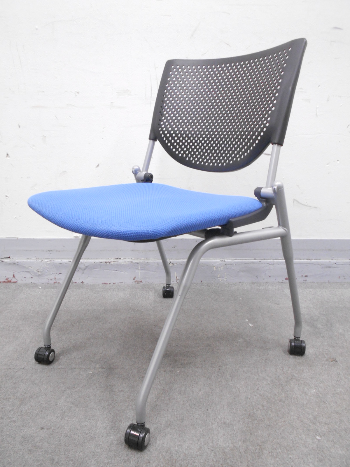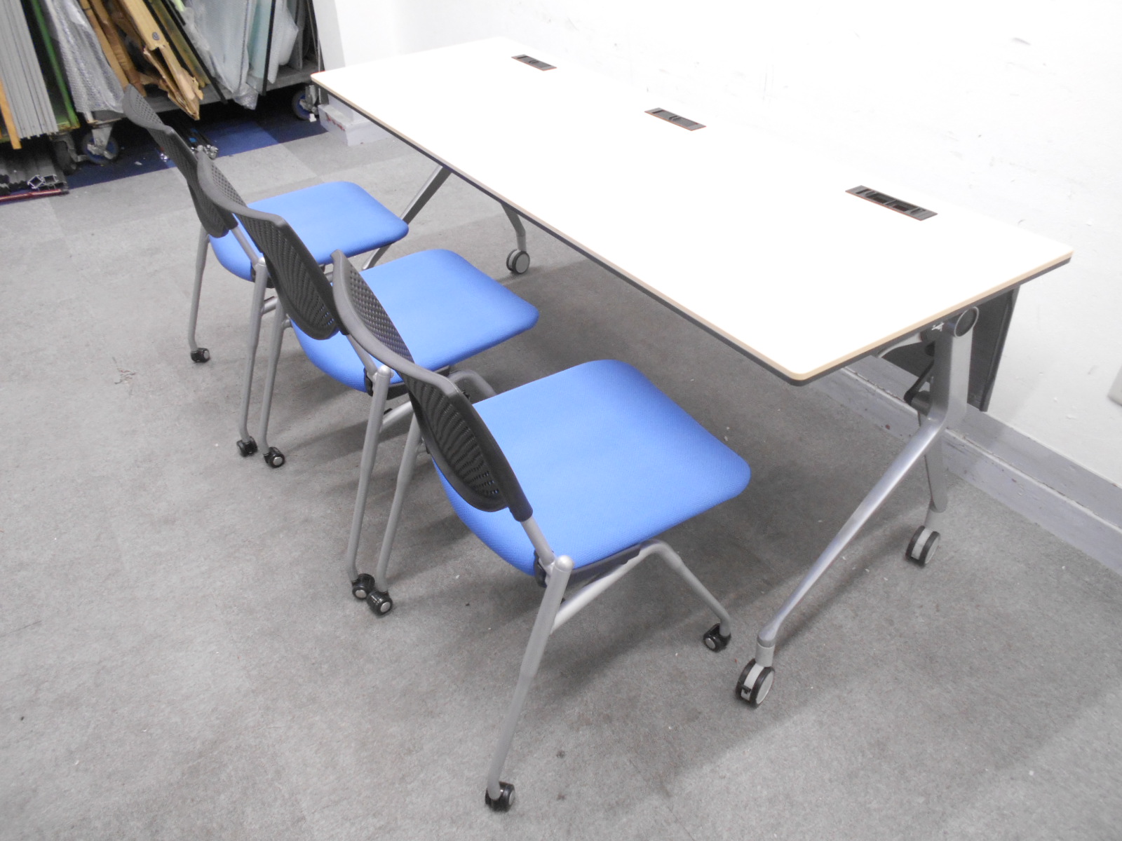 【KS】【キャスター付きで片付け可能!商談や休憩室用にも!】■3名セット■オカムラ製・テーブル+チェアセット■幅1800mm・幕板付き- 茨城南店
