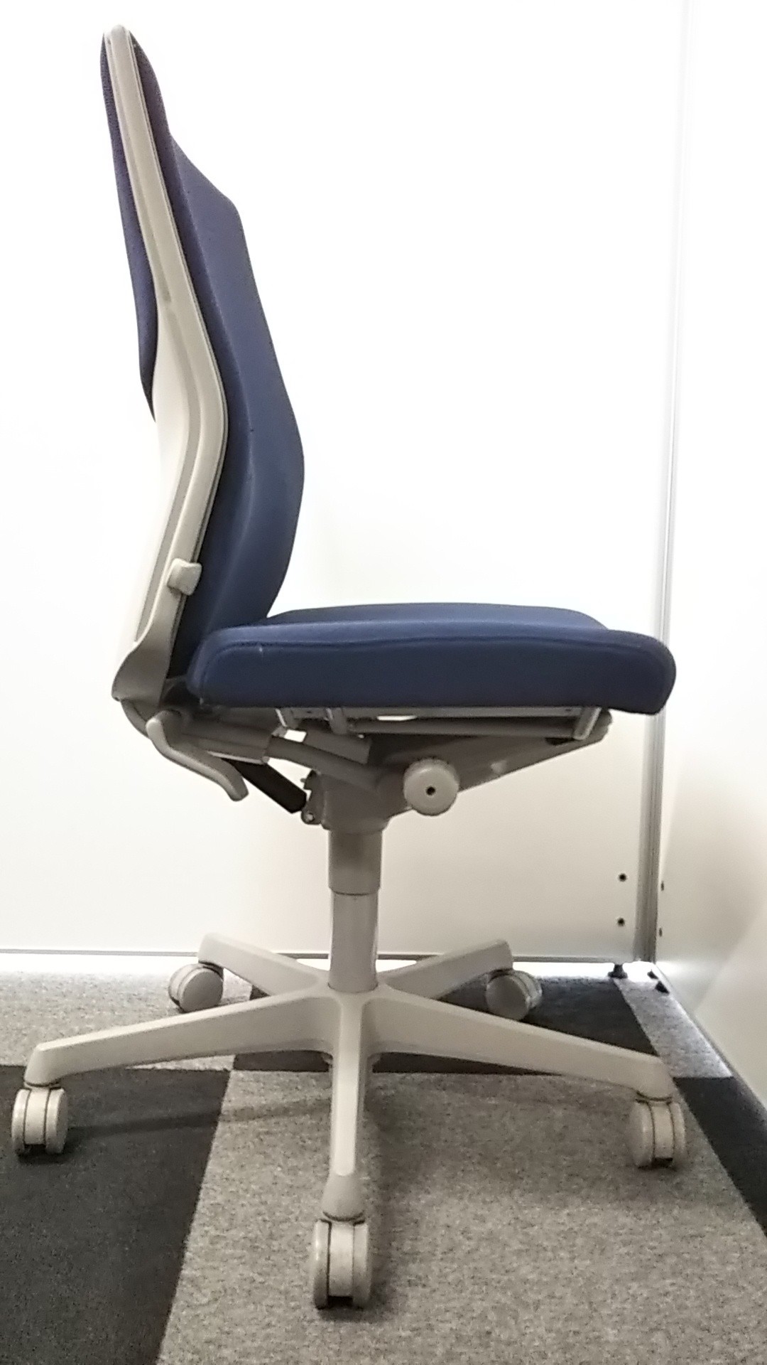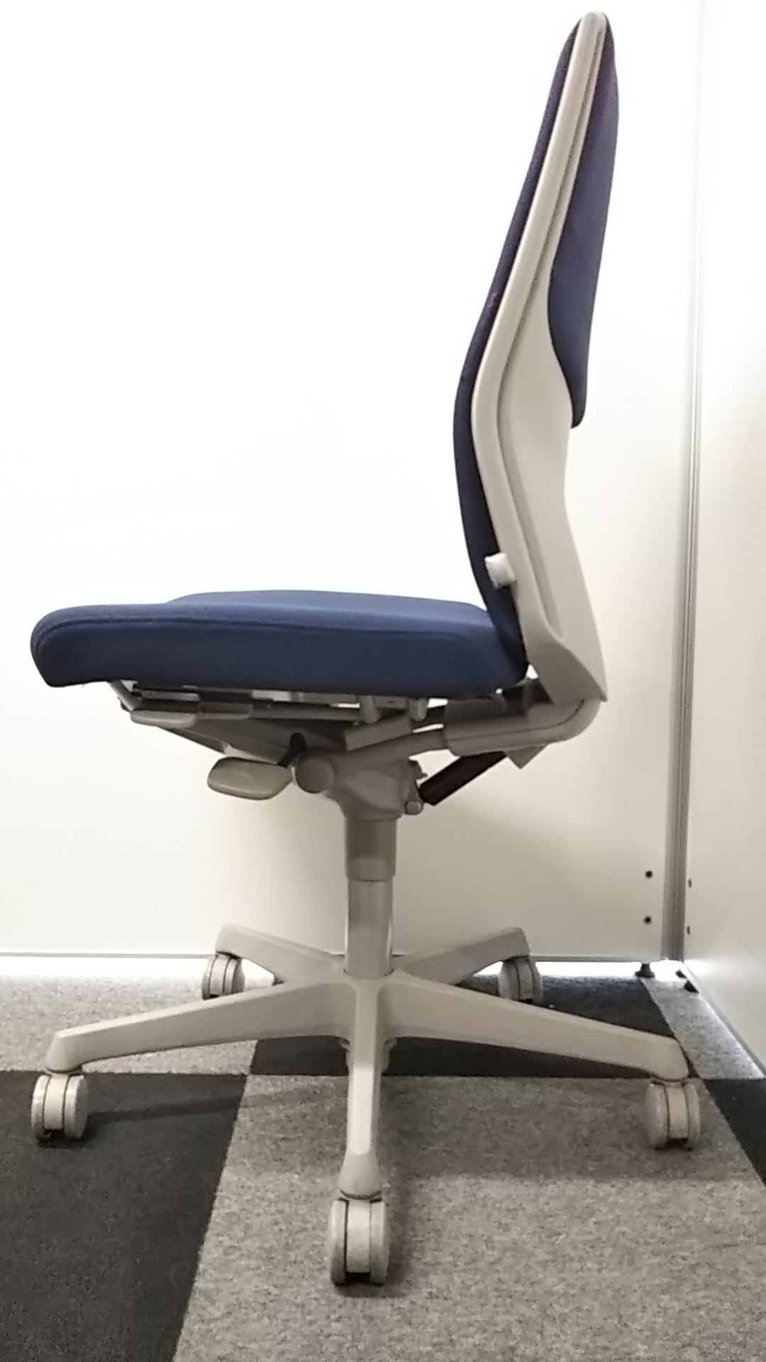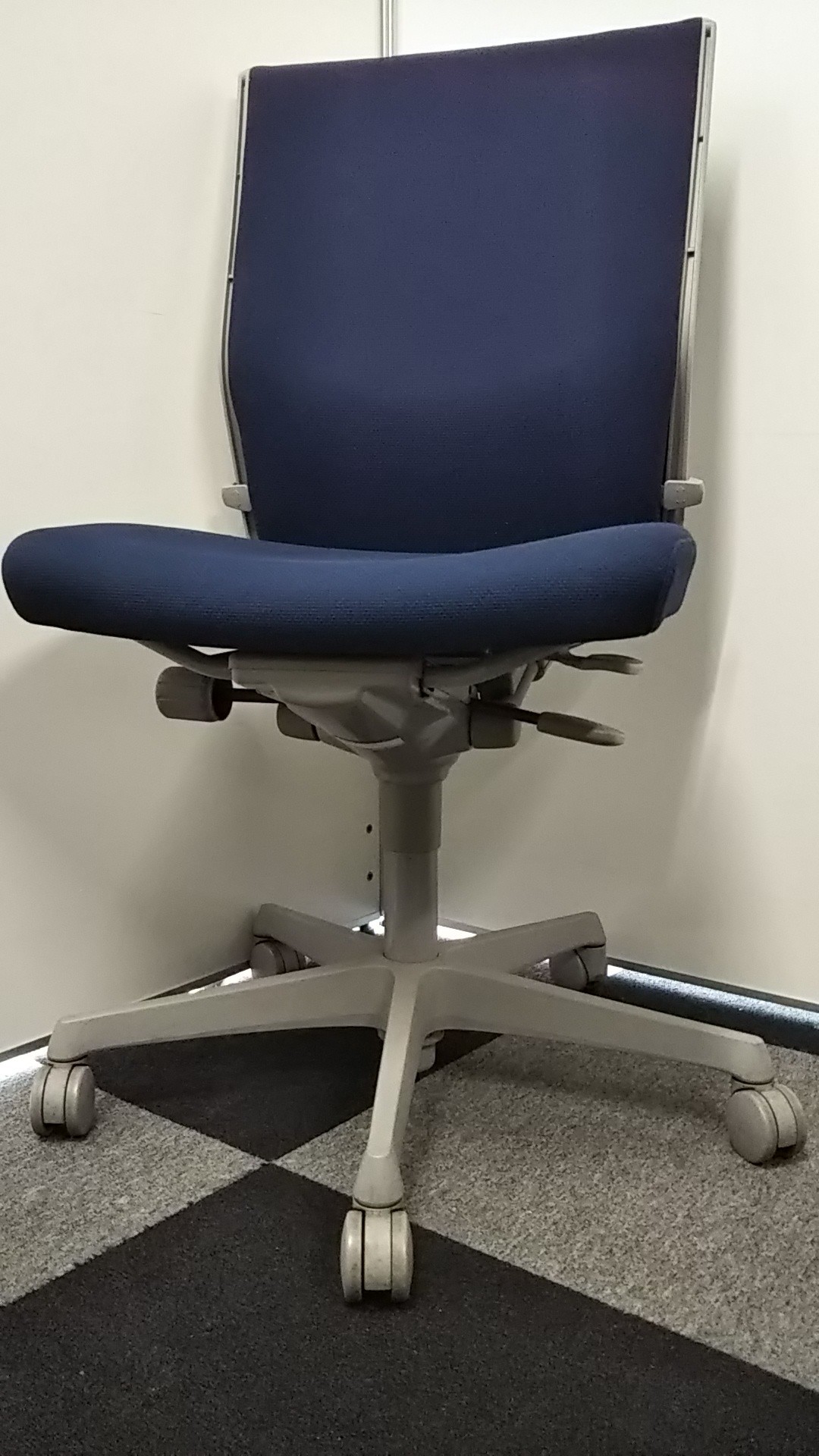 【長時間のデスクワークもランバーが快適にサポート!】■okamura(オカムラ)製 エスクードチェア ローバック 色:ダークブルー 肘無し