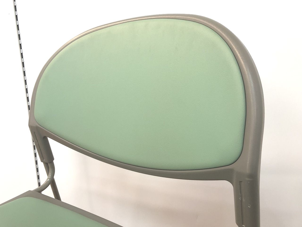 背もたれはプラスチック素材でできていて座面はビニールレザータイプですので