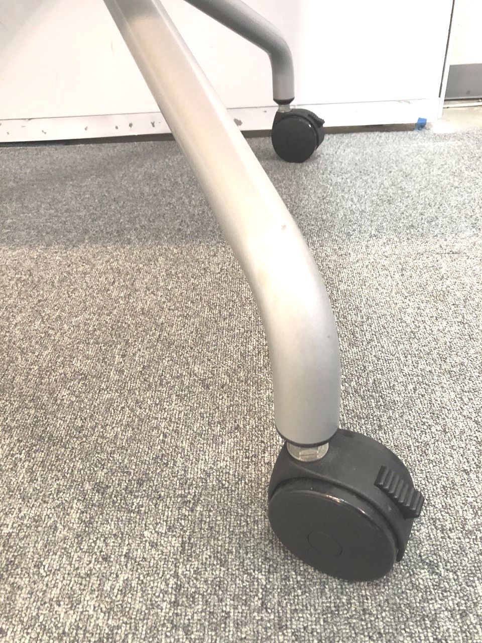 - 一部不具合あり天板歪み、アジャスター無し、キャスター使用不可ようなそのテーブルの本来の効用を果たすための機能以外の一部が使用不可な状態。(例、キャスターロッ ク機能使用不可、棚板無し等がある。)