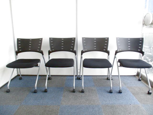 【お得な4脚1セットです!】会議の時も疲れにくいチェアを!【人気のブラックです!】- 千葉店