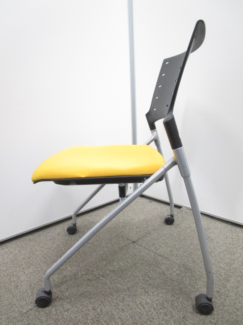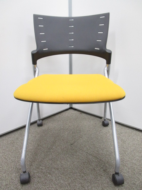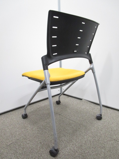 【明るいイエローカラー】収納性抜群のネスティングチェア!|キャスター付き【Ω】- 池袋店