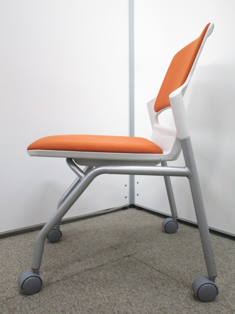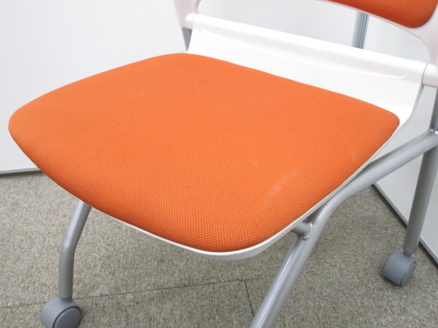 【鮮やかなオレンジがオフィスを飾る!】ポップなデザインのネスティングチェア!キャスター付で移動楽々です!【ネスティング】- 池袋店