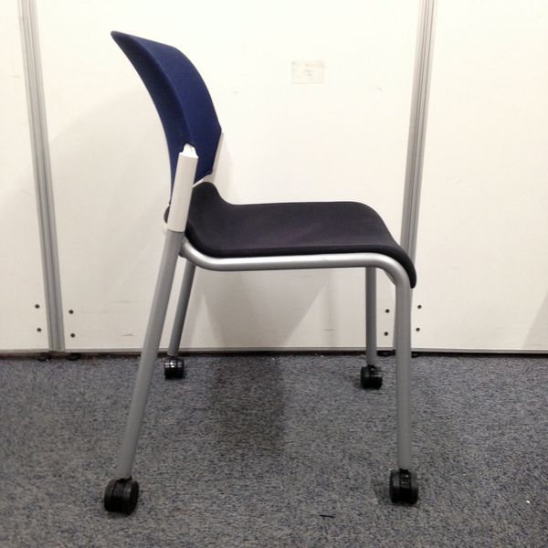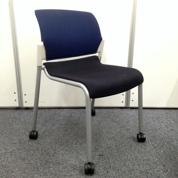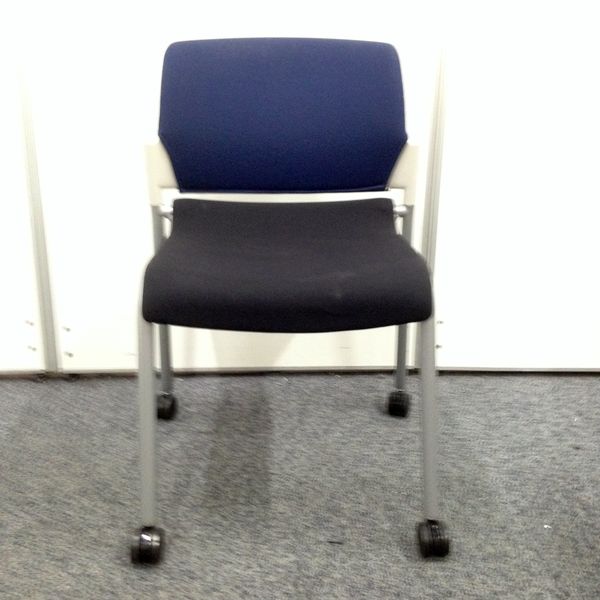 【ラスト1脚!】■内田洋行製・スタッキングチェア ■ブルー ■キャスター付- 名古屋本店