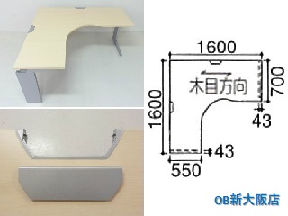 【定価約30万円程度】オカムラ プロユニットシリーズ L字型デスク 天板ネオウッドライト×脚ホワイト W1600×D1600の広々サイズ 限定1台入荷
