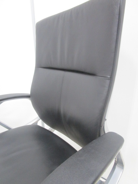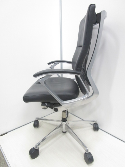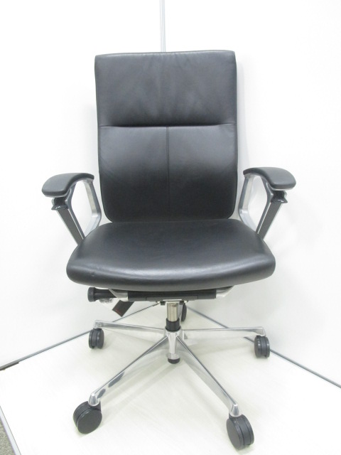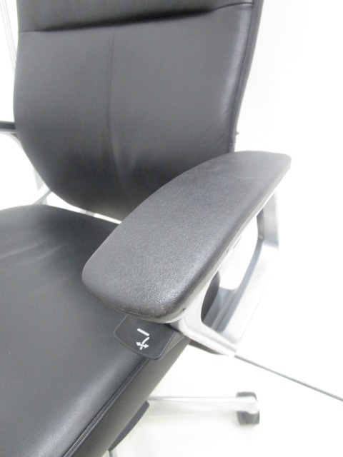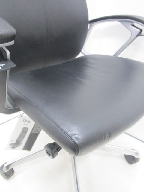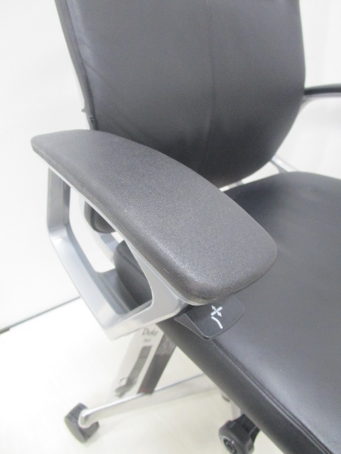 【滑らかで高級感あふれる座り心地が大人気!!】■オカムラ(okamura)製 デュークチェア(DUKE) ハイバック肘付き ■レザー張地 ■固定肘 ■ブラック【弊社使用欄:A01037767】