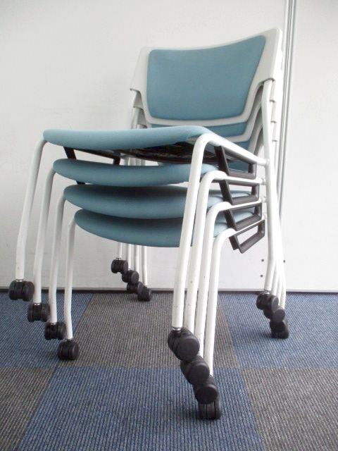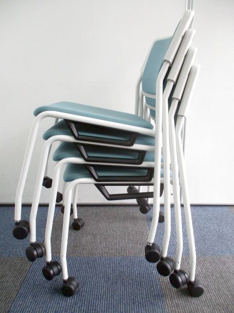 【重ねて収納可能】ターコイズブルー色のチェア!【会議室におすすめ】- 千葉店