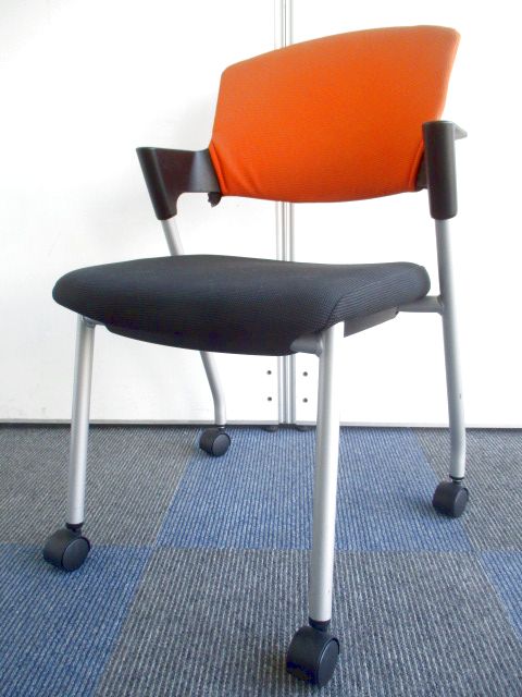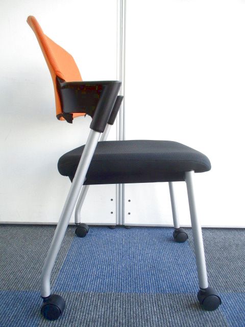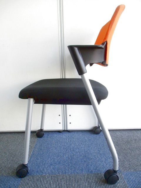 【シンプルスマートなスタッキングチェア!】■コクヨ(KOKUYO) プロッティ(Protty)チェア スタッキングチェア ミーティングチェア ■肘付き キャスター付き ■オレンジ【2505】弊社使用欄【A01018053】