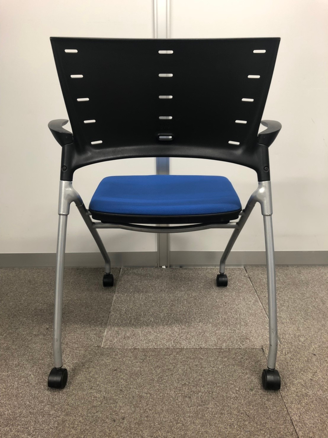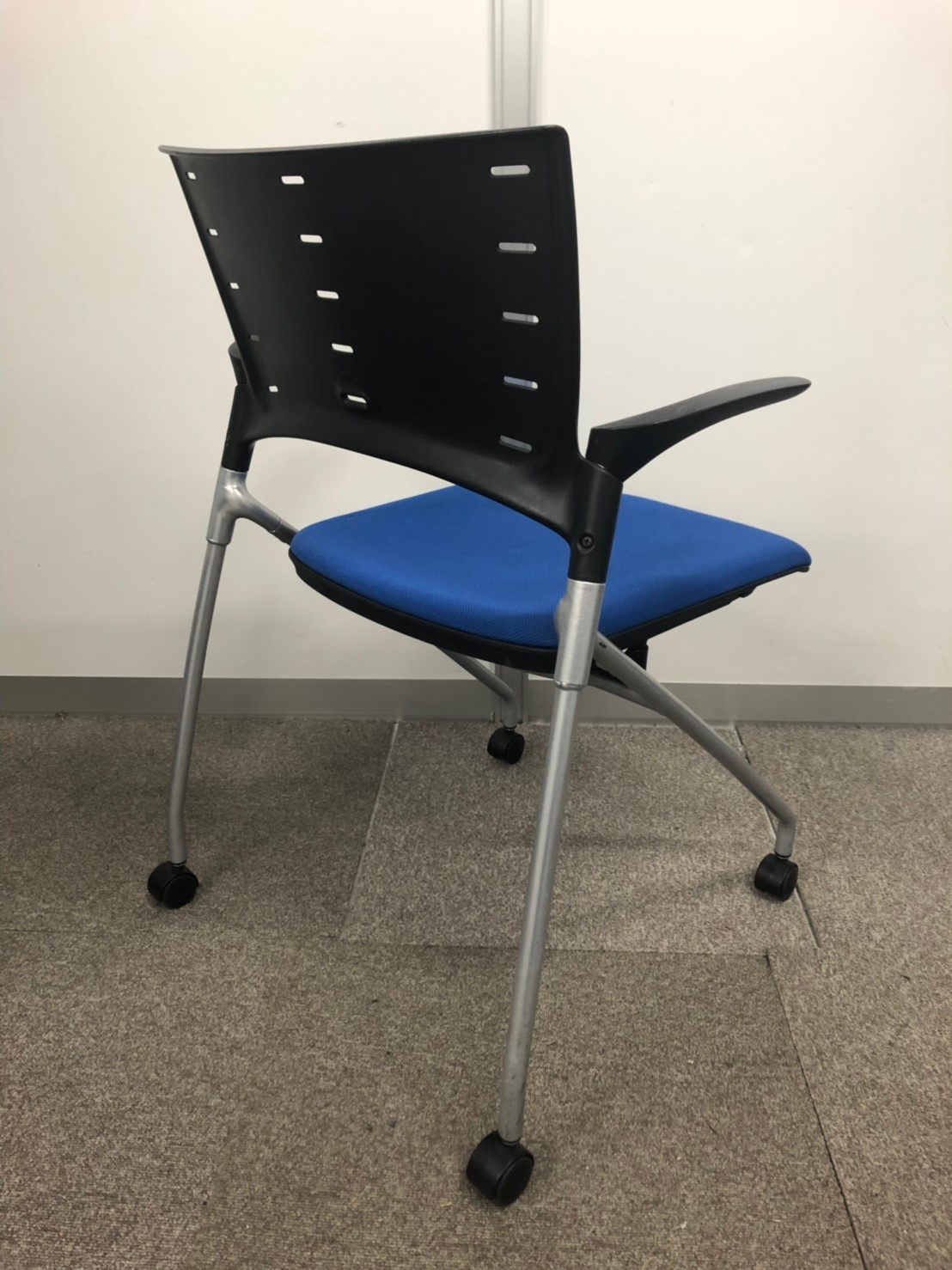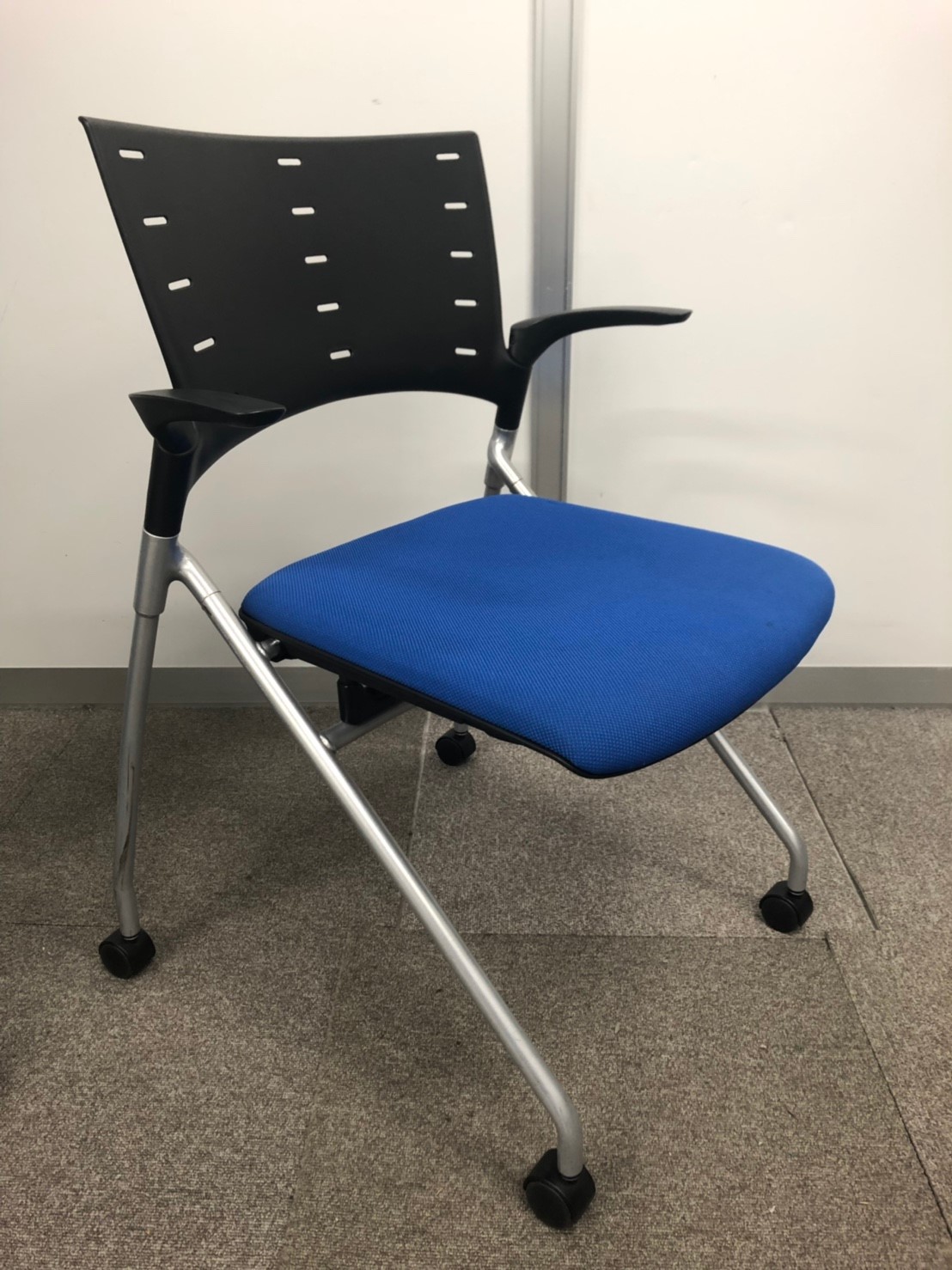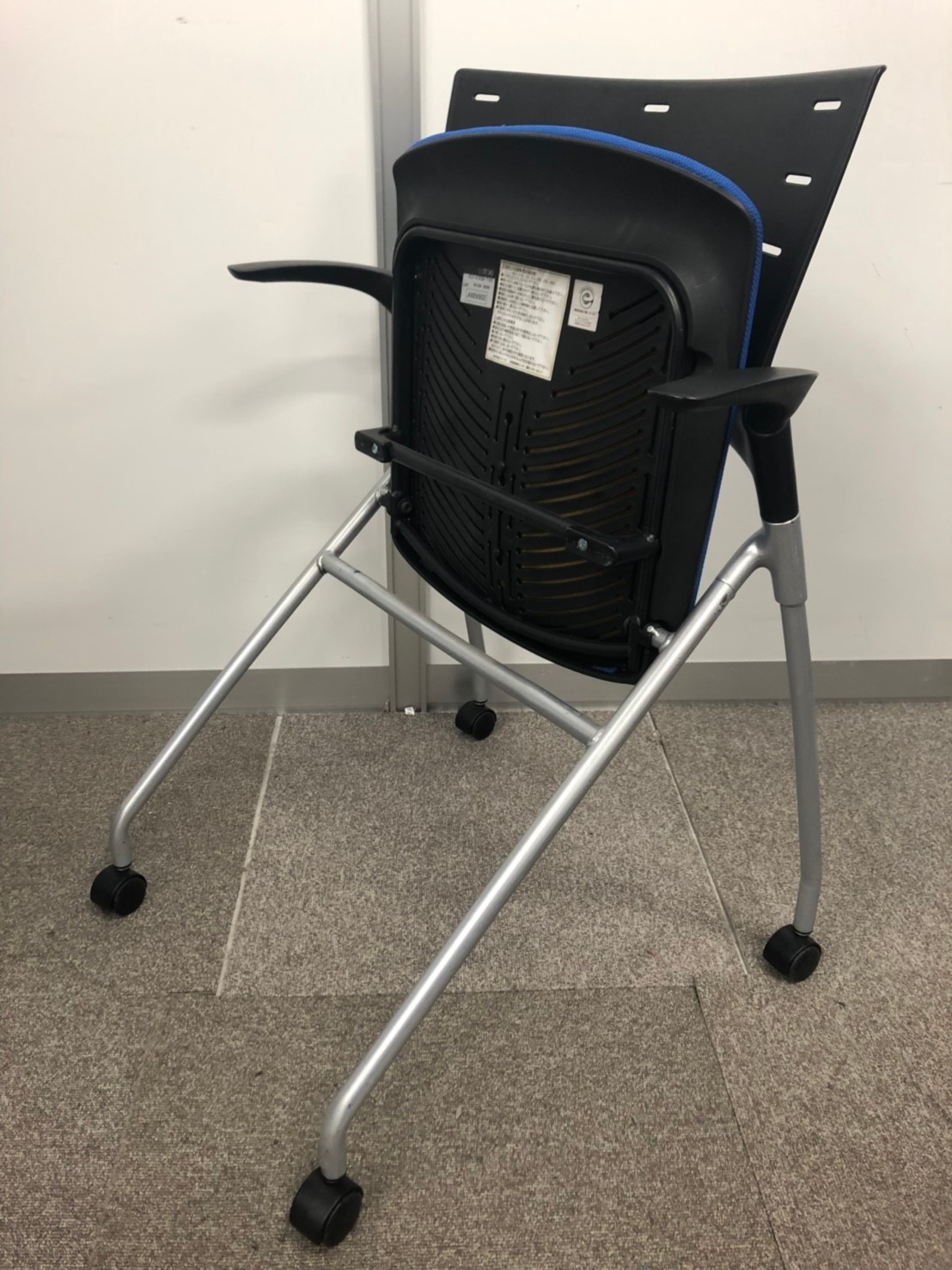 肘付きの会議用チェア入荷!横に重ねられるネスティングチェア!キャスター付きで収納も楽々!- 在庫数