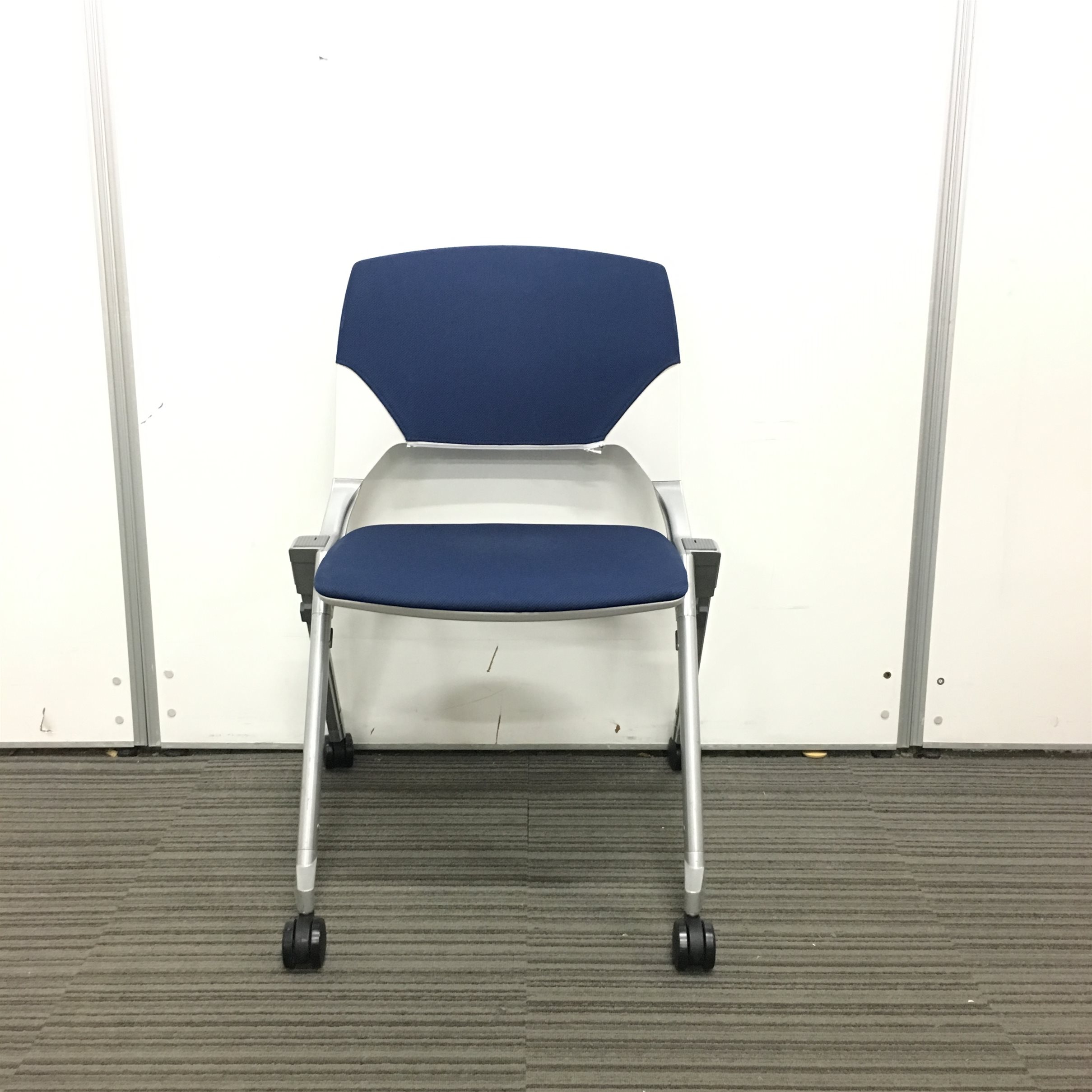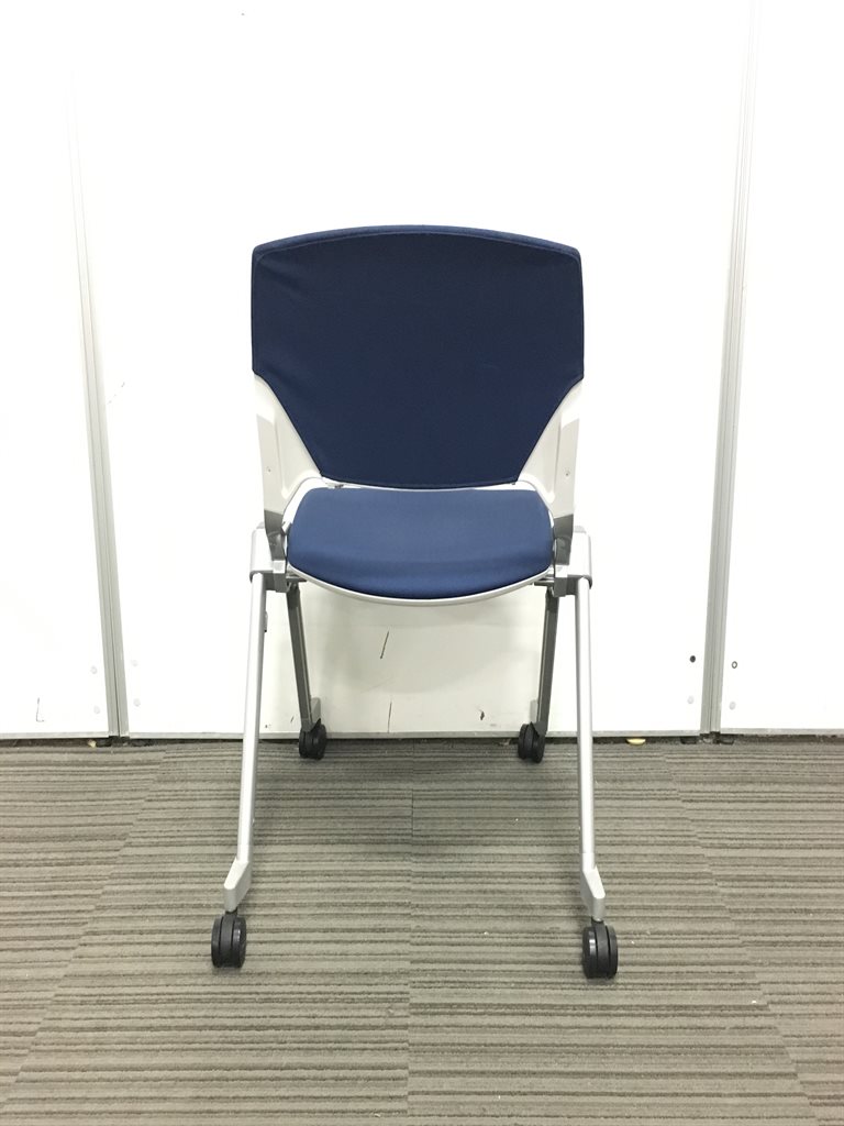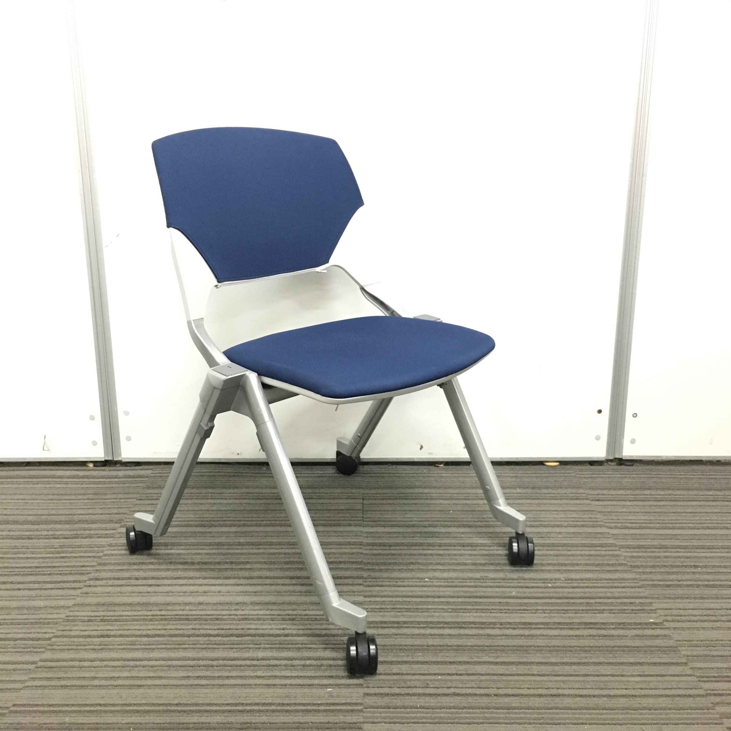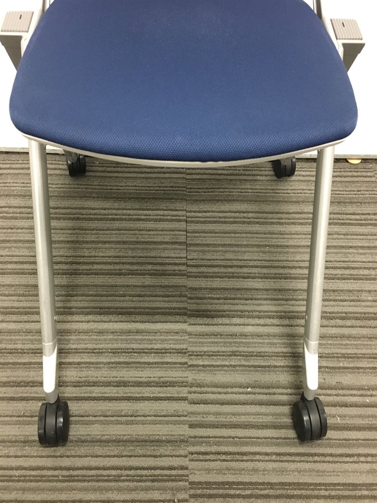 【12脚入荷!】内田洋行製スタッキングチェア|2018年製|キャスター付で移動もらくらく! 中古 ネスティング可能 ブルー ロット 会議室 【倉庫在庫品】
