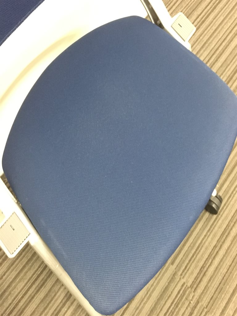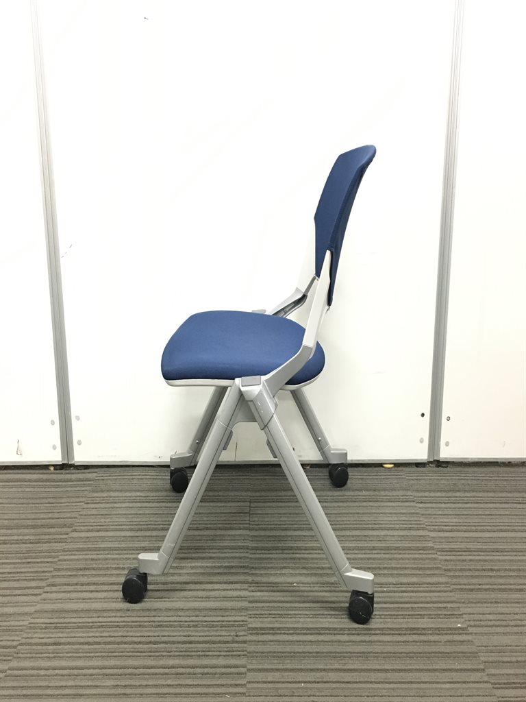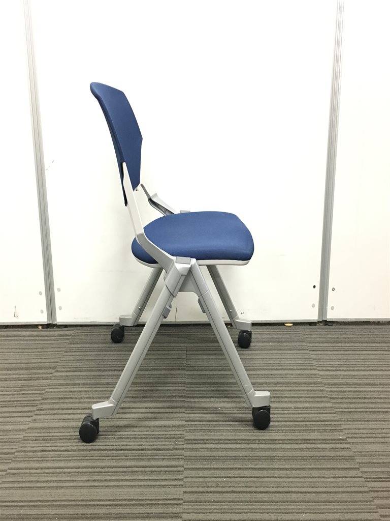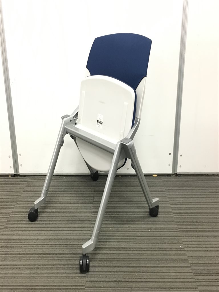 【12脚入荷!】内田洋行製スタッキングチェア|2018年製|キャスター付で移動もらくらく! 中古 ネスティング可能 ブルー ロット 会議室 【倉庫在庫品】