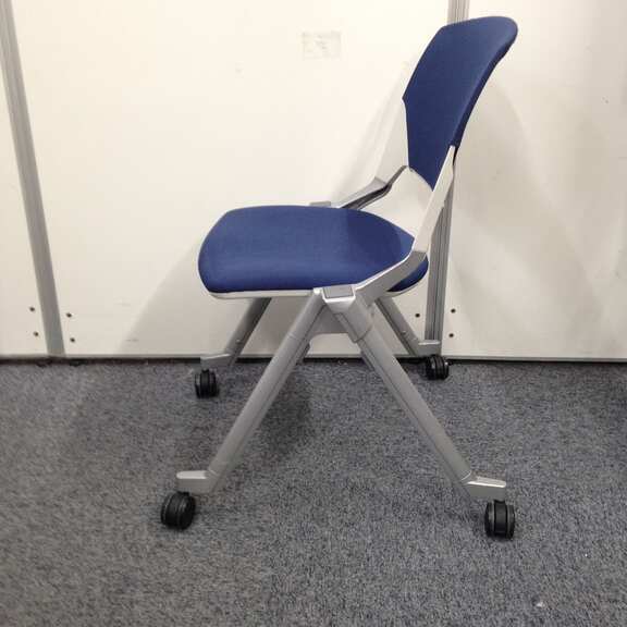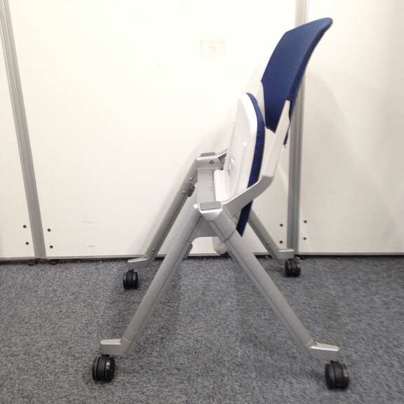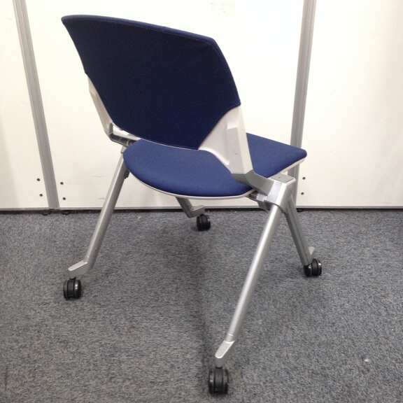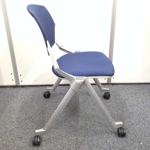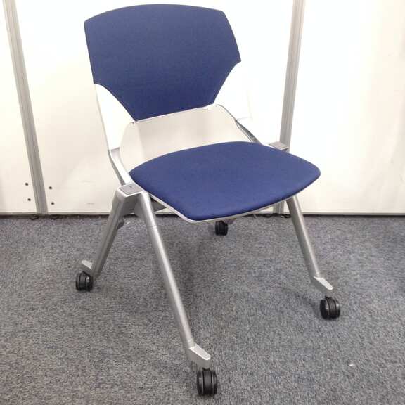 【12脚入荷!】内田洋行製スタッキングチェア|2018年製|キャスター付で移動もらくらく! 中古 ネスティング可能 ブルー ロット 会議室 【倉庫在庫品】