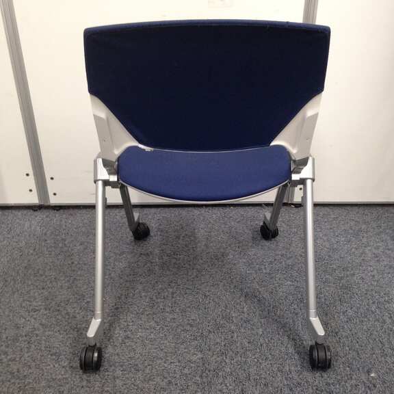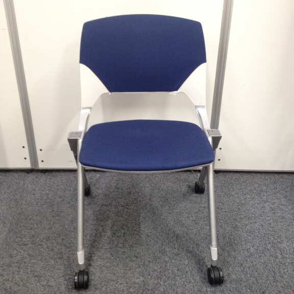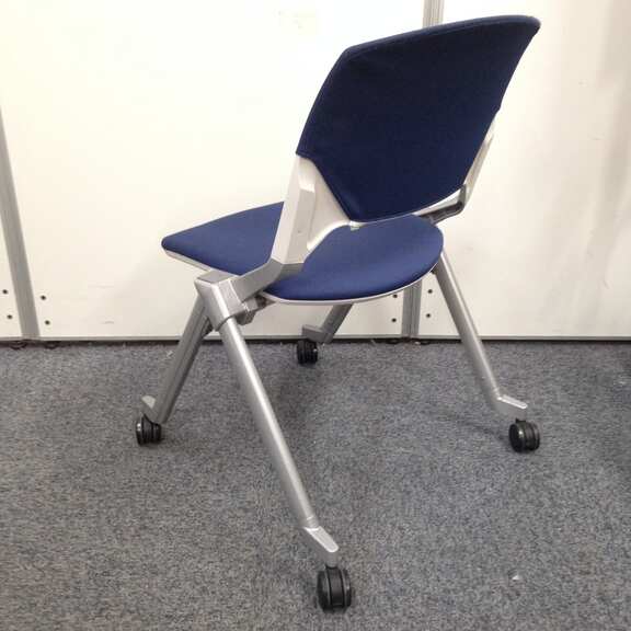 【平行収納、重ねての収納どちらも可能な珍しい仕様のミーティングチェア!】■ウチダ(UCHIDA)製 FM-320シリーズ スタッキングチェア ネスティングチェア 肘無し キャスター付 ■ダークブルー【AD】