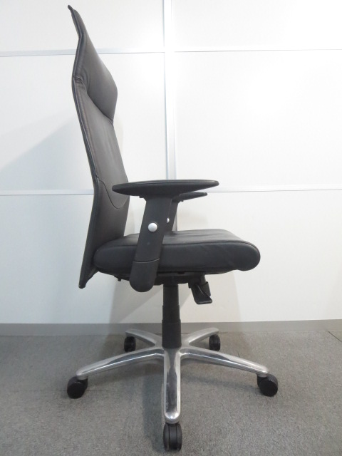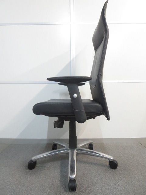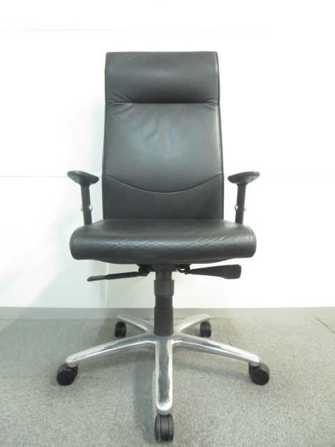 【エクストラハイバックでリラックス!】■オカムラ製 エグゼクティブチェア【高級黒革張り】- 川崎店