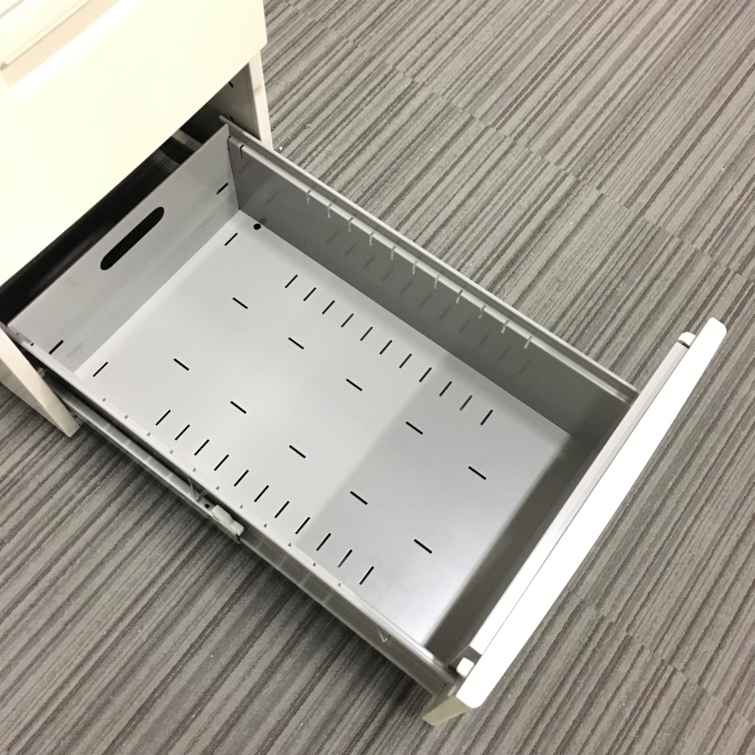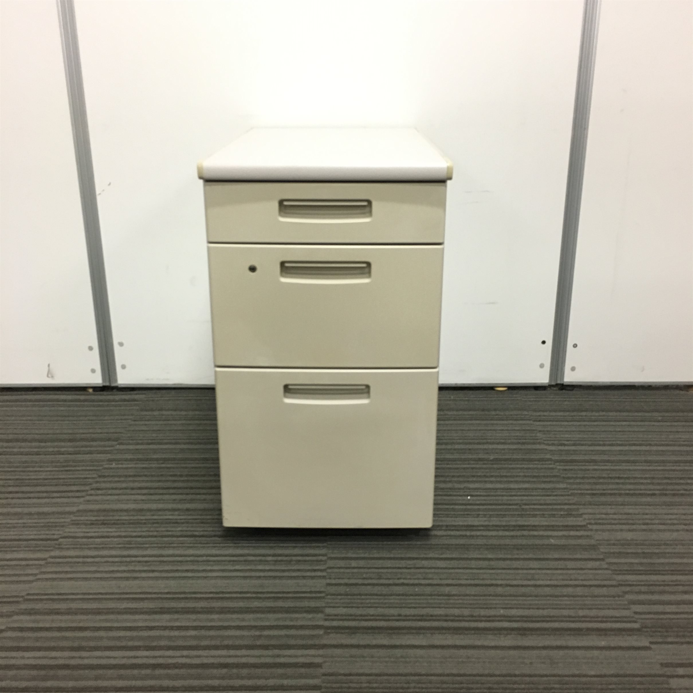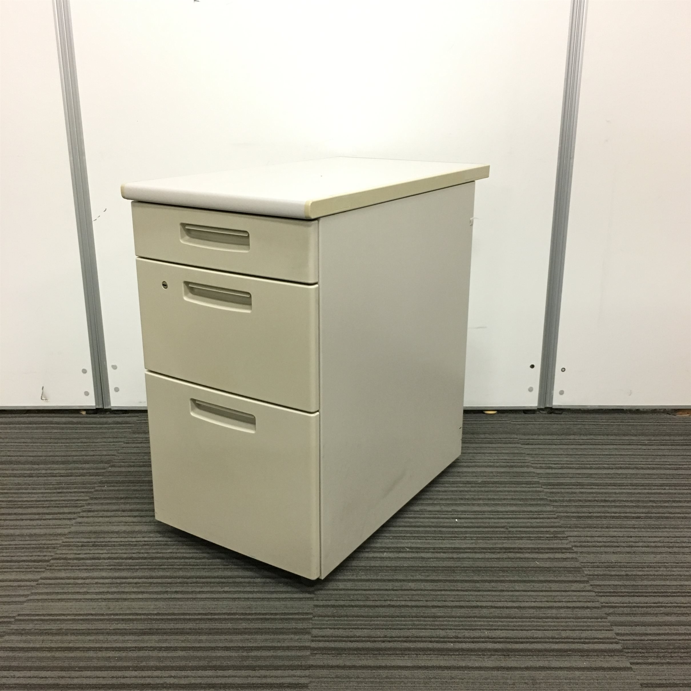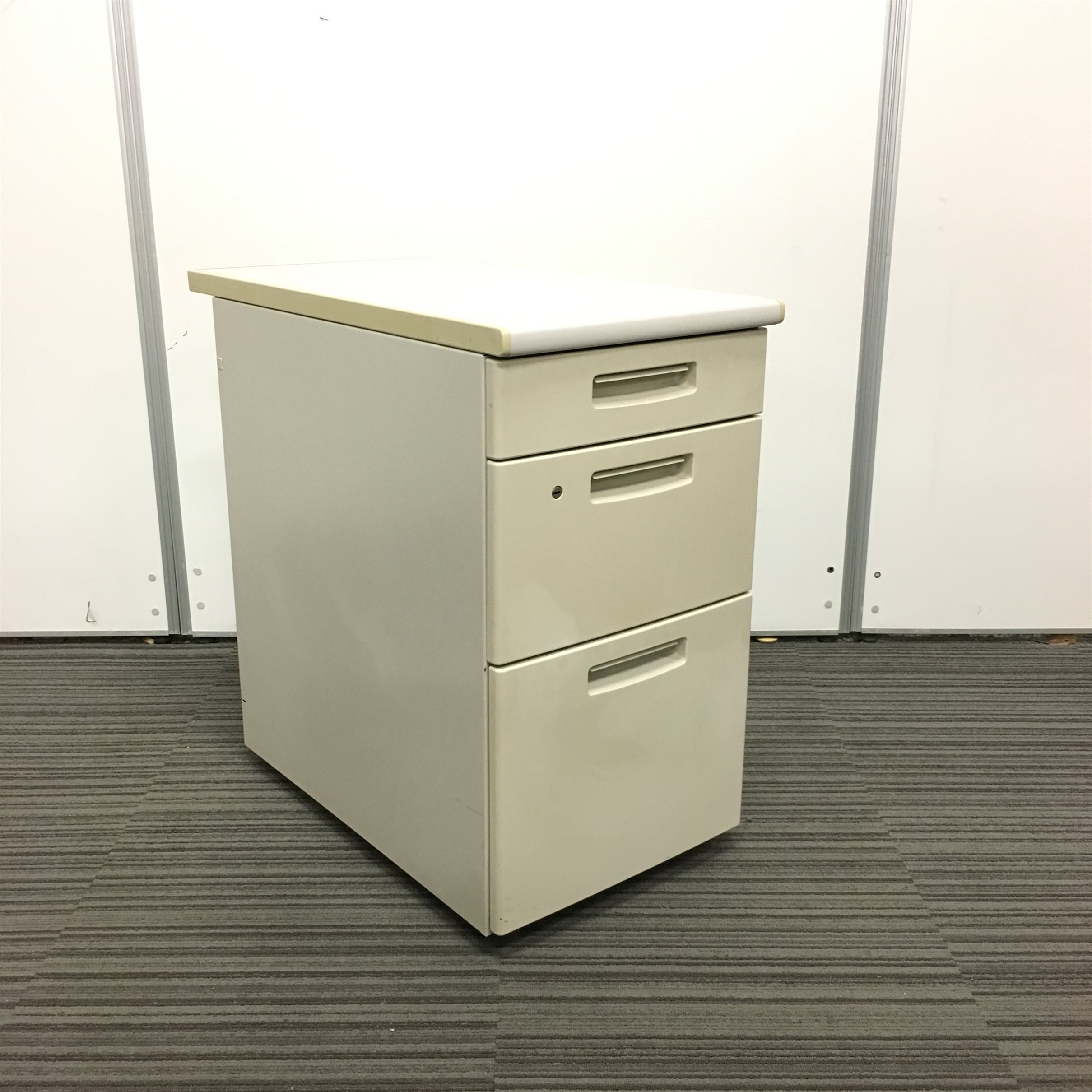 - 一部不具合ありその脇机・ワゴンの本来の効用を果たすための機能以外の一部が使用不可な状態。(例、引出が開閉しづらい、 キャスターロック機能使用不可、ラッチ不良 等がある。)
