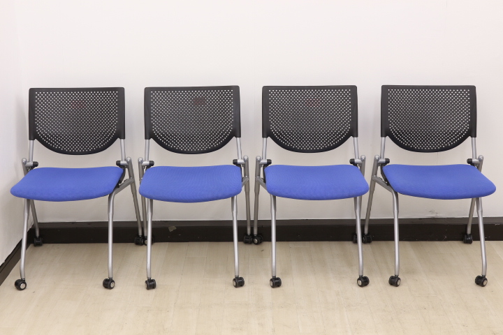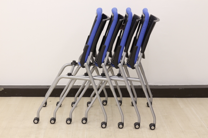 オカムラ製/プロスタック(ブルー)/折りたたみ会議用チェア
