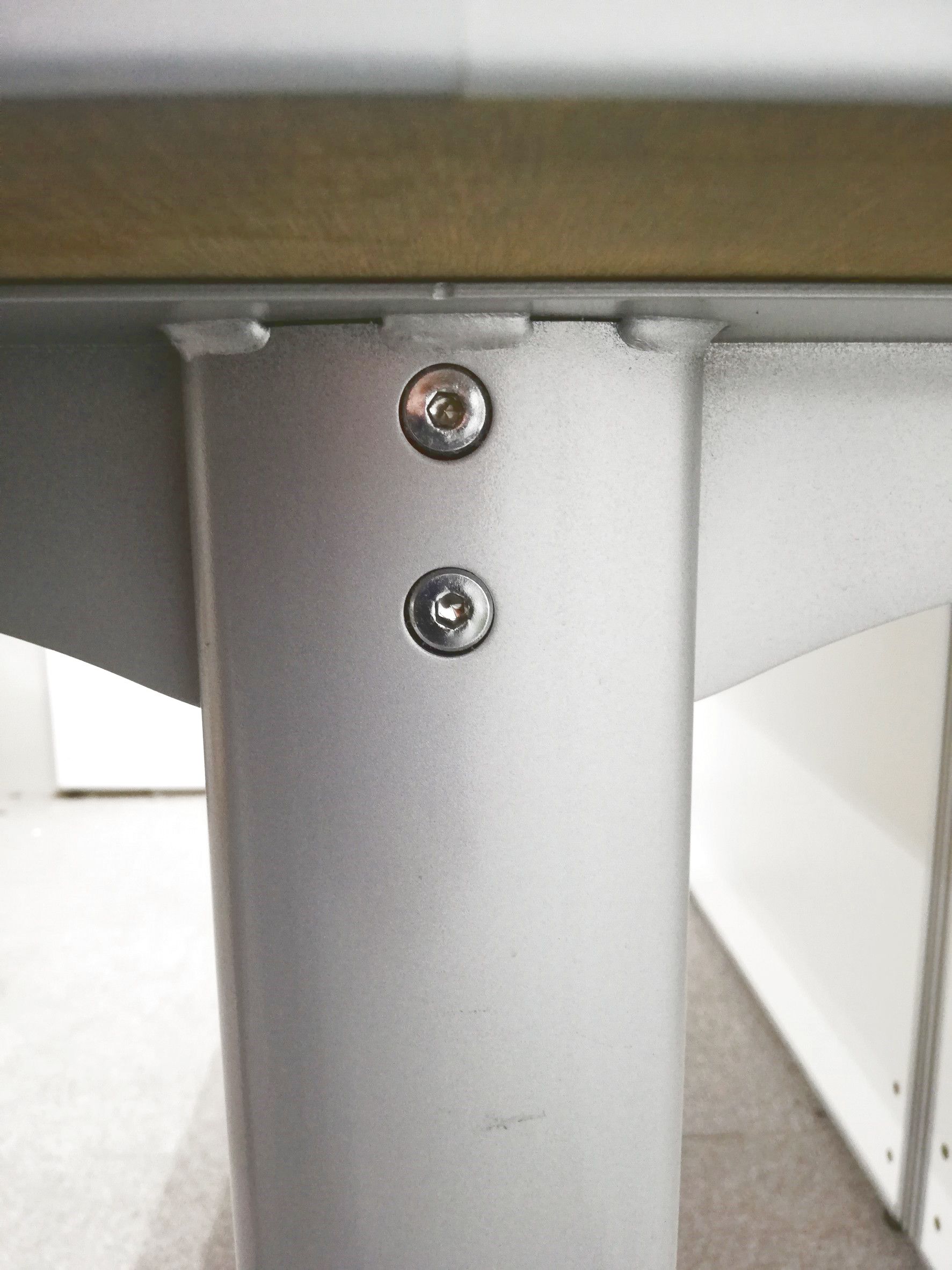 - 目立つ箇所あり傷・凹みが多数、深い傷・凹みが一部ある。(例、天板、幕板、棚板、サイド部分、脚部等にある。)