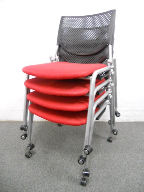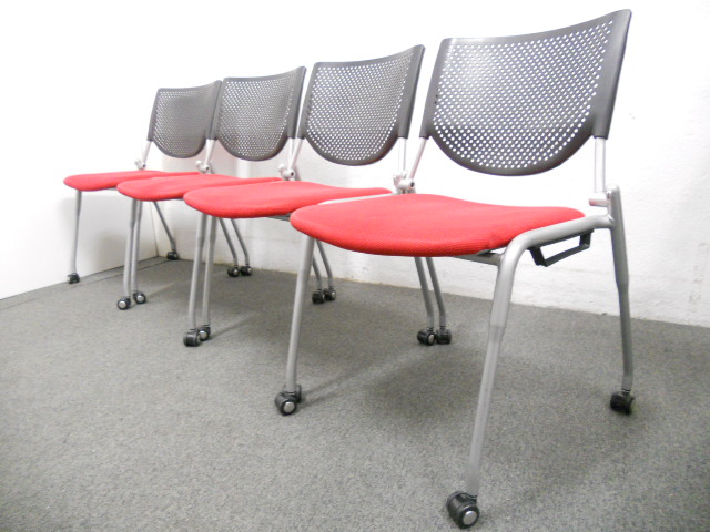 【シャープで人気のデザイン!】■プロスタック スタッキングチェア4脚セット レッド【PRO STACK】- 川崎店