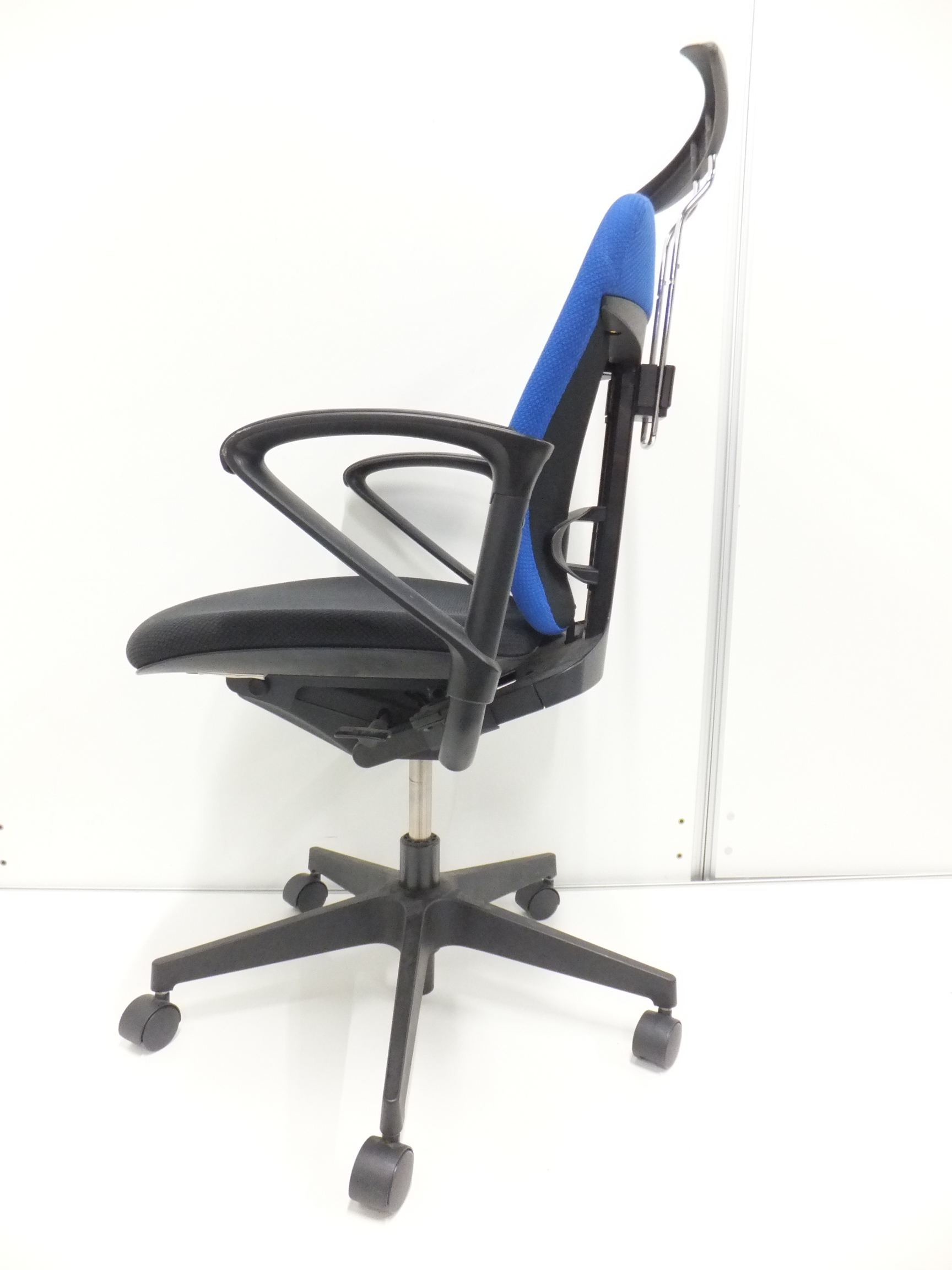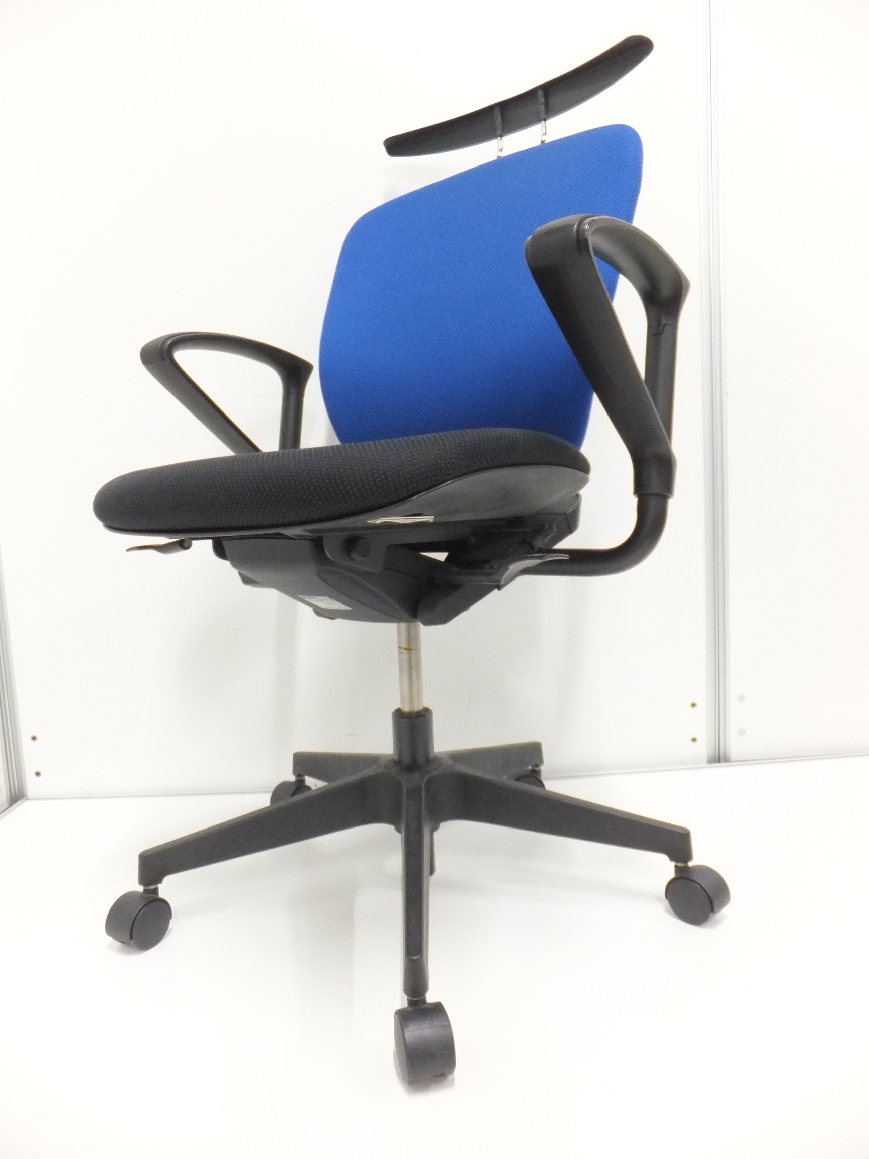 【一人ひとりにマッチする座り心地!姿勢の変化にフレキシブルに対応!】■イトーキ製 プラオ 肘付ローバックチェア ■サークル肘 ■背面ストロングブルーブルー&座面ブラック