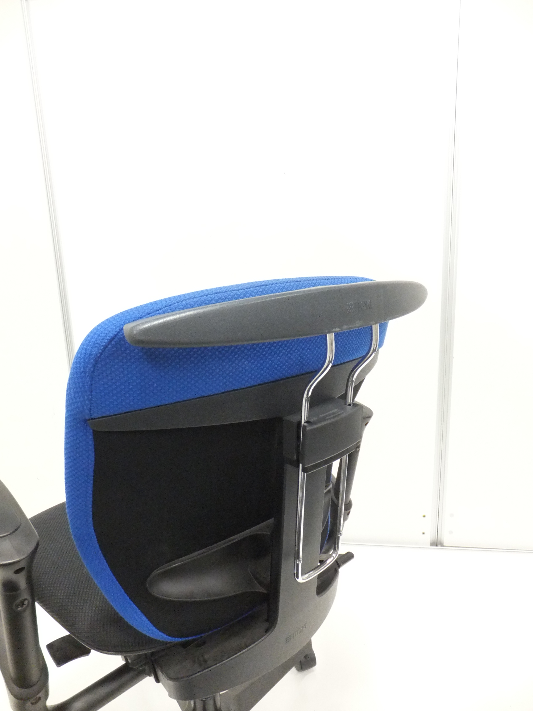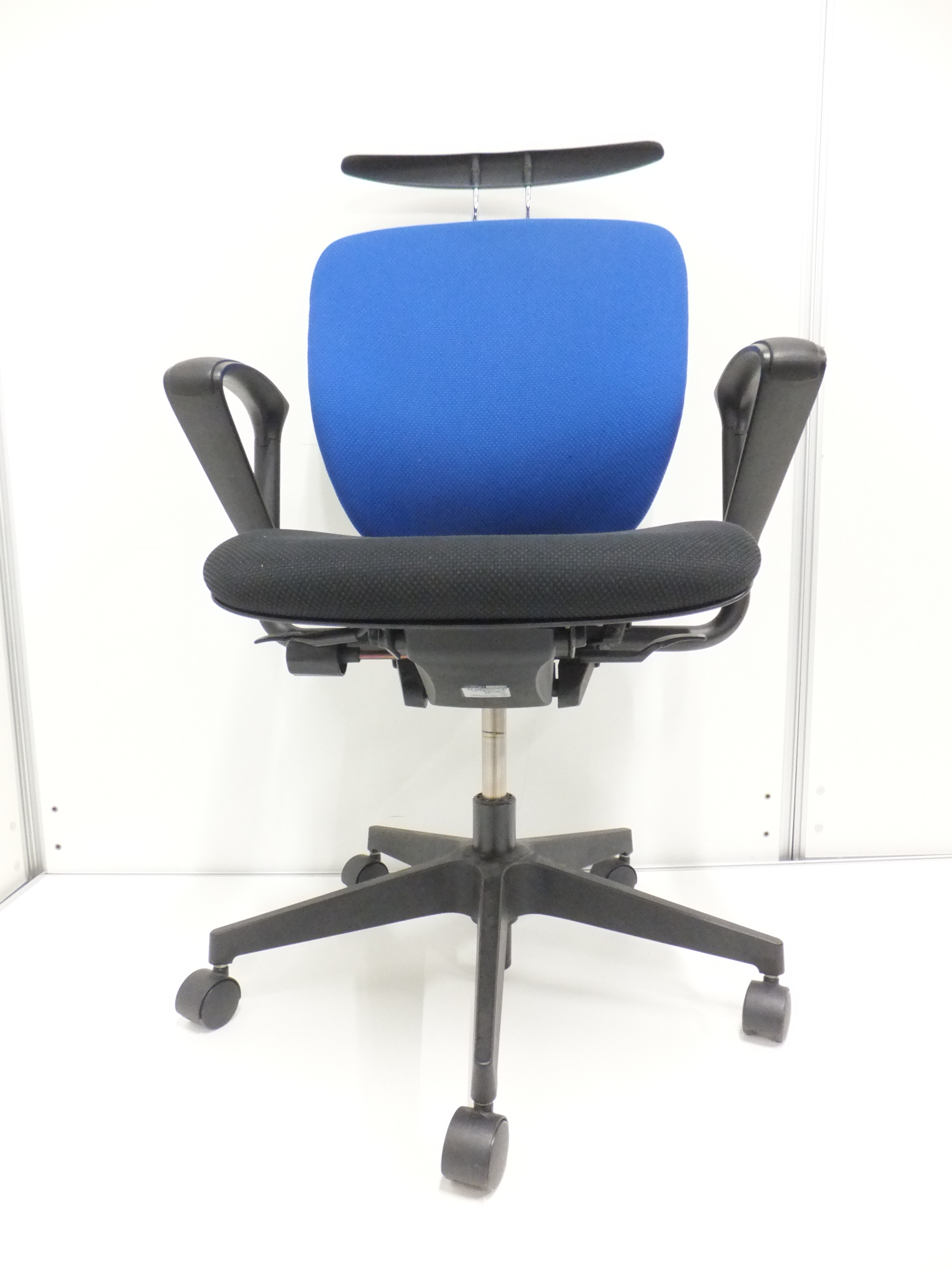 【一人ひとりにマッチする座り心地!ミドルクラスの定番チェア!】■イトーキ(ITOKI)製 プラオ(PRAO)チェア 肘付ローバック ■ストロングブルー ×ブラックシェル ■サークル肘 ■ランバーサポート付き ■防炎生地