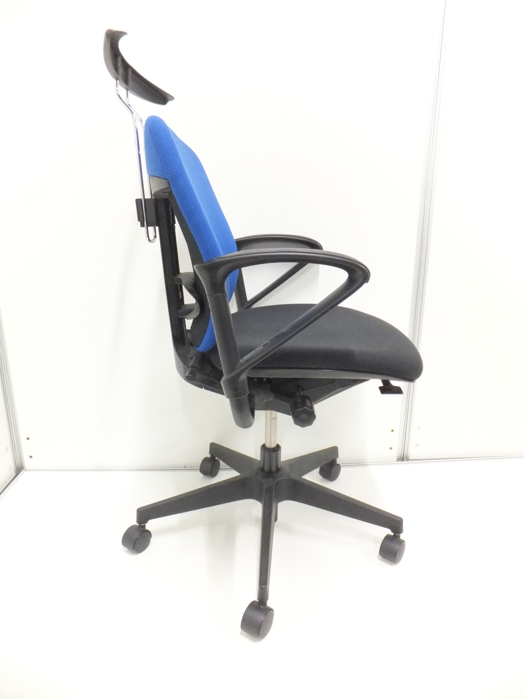 【一人ひとりにマッチする座り心地!ミドルクラスの定番チェア!】■イトーキ(ITOKI)製 プラオ(PRAO)チェア 肘付き ローバック ■固定肘・ランバーサポート付き ■ブルー×ブラックシェル