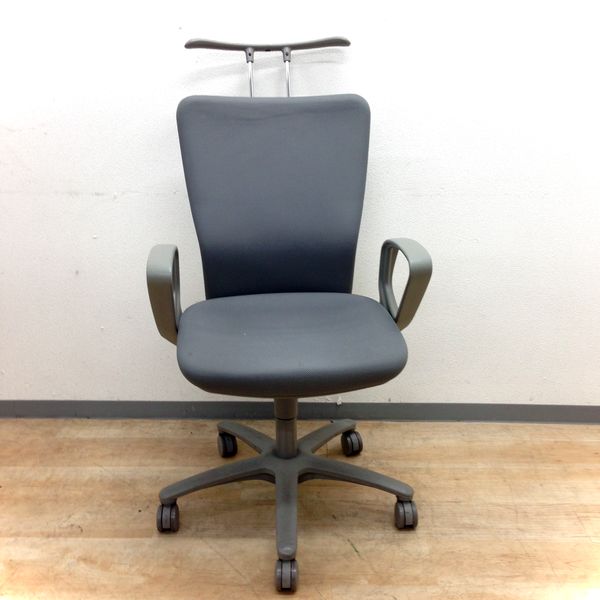 【残り1脚】■オカムラ製■カロッツアチェア■肘付きハイバック■グレーカラー【コートハンガー付き】- 岐阜店