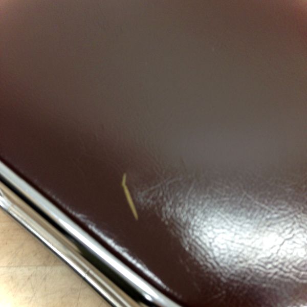 - あり黄ばみ・変色が広い範囲にうっすらある、または濃い黄ばみ・変色が一部ある。(例、座面・背もたれ、脚部等にある。)