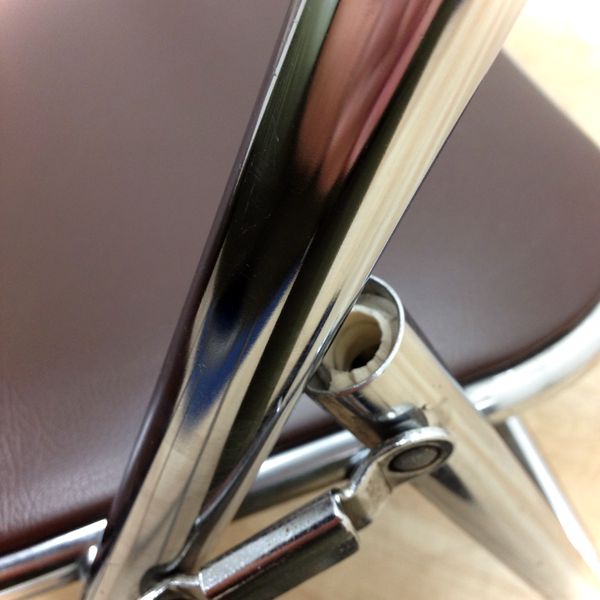 - かなり強い濃い黄ばみ・変色が商品全体にある。(例、座面・背もたれ、脚部等にある。)