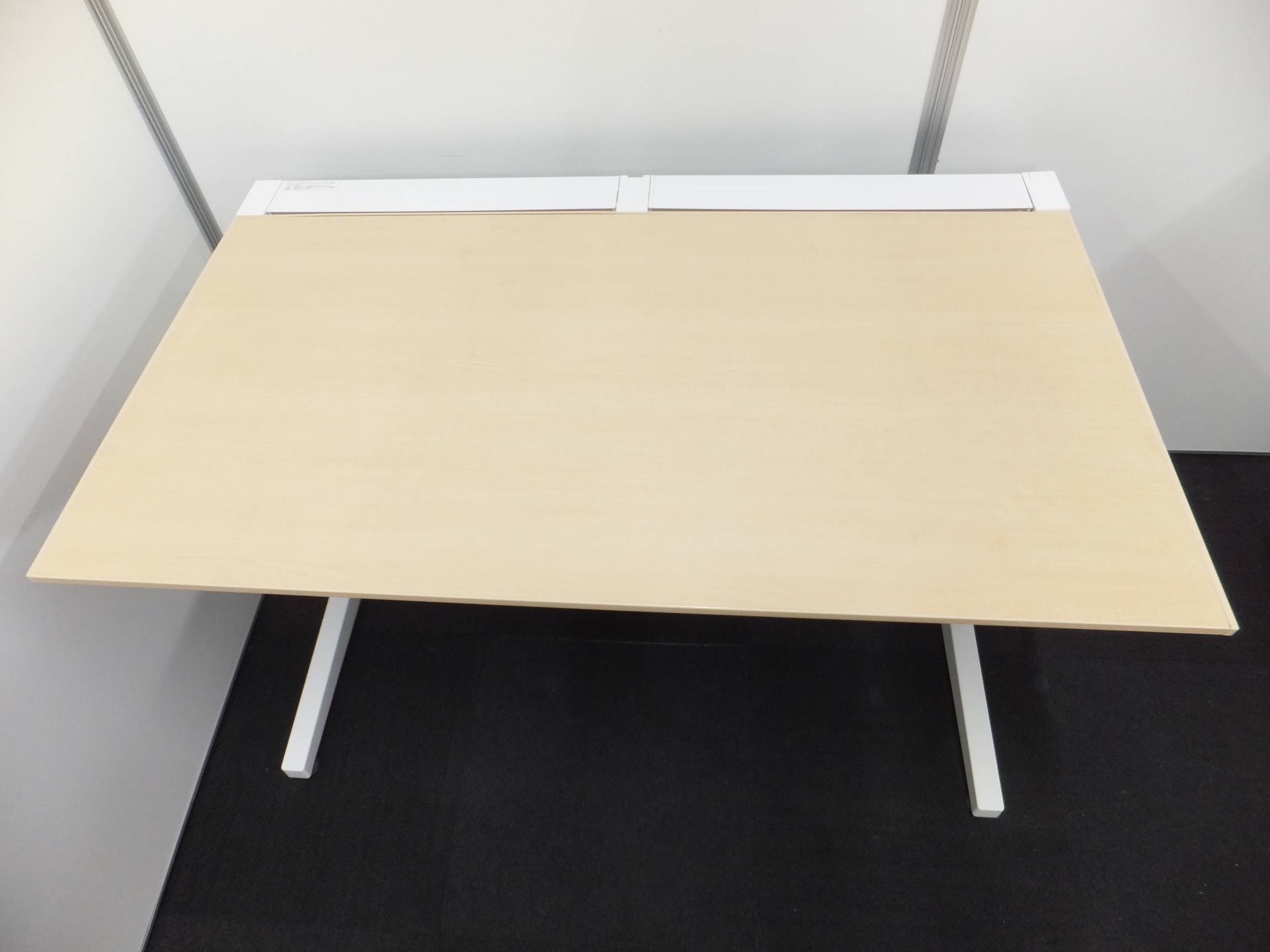 【配線カバーも充実の高品質デスク!作業スペースには充分なW1200㎜!】■コクヨ(KOKUYO)製 isシリーズ 平机 ■引き出し付き ■ホワイト/天板:木目ナチュラル
