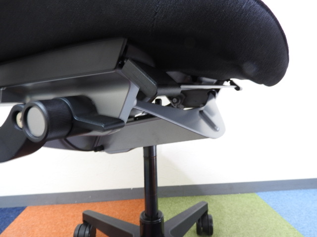 快適な座り心地に不可欠な調節機能である、上下昇降、座面の奥行き調整、リクライニングなどを備えており、操作もわかりやすく好評です。 特に、座面の奥行きは、座面下の左右に通った細いバーで調整でき、座ったままで軽やかに滑るように調整が可能です。 価格面では、新品では高めですが、中古は流通も多く、定価の3割前後の価格で高級チェアの座り心地を手に入れることができます!