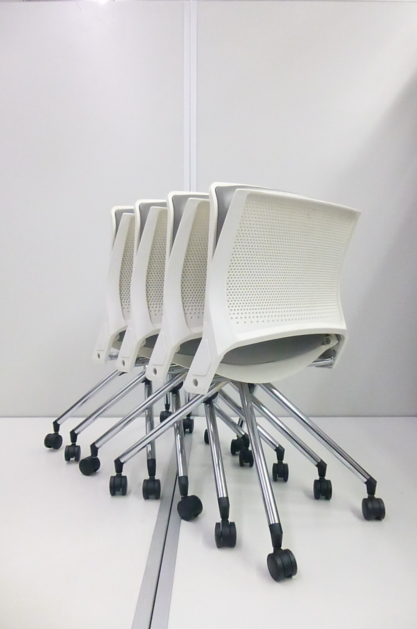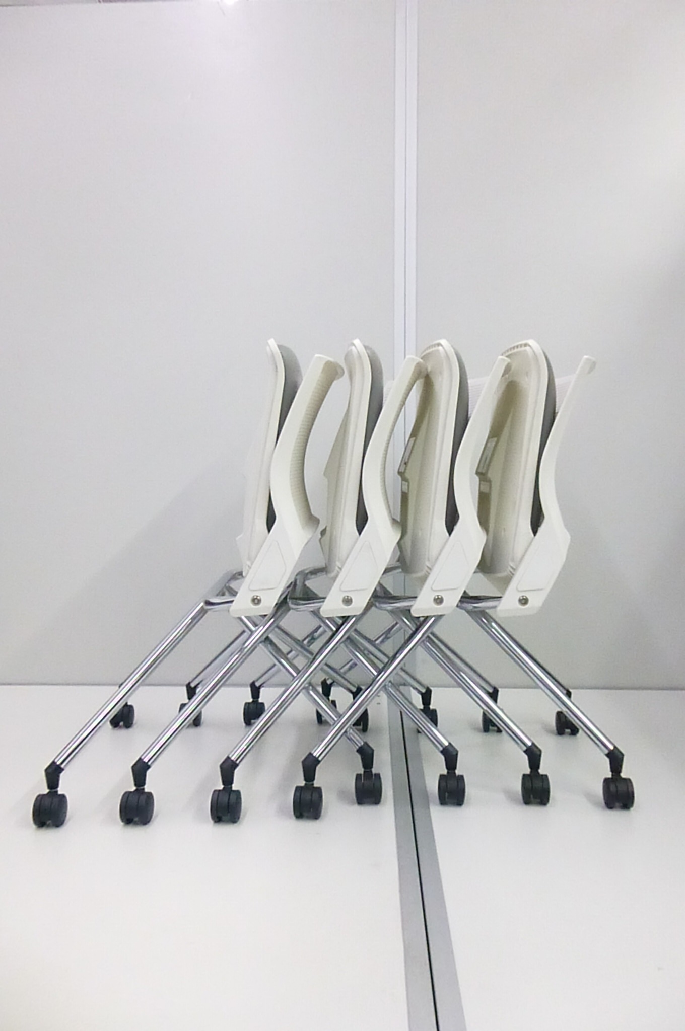 【KS】[4脚セット]ネスティング収納可能! キャスター付き 会議用椅子 ミーティングチェア【在庫入替のためお安く!】- 茨城南店